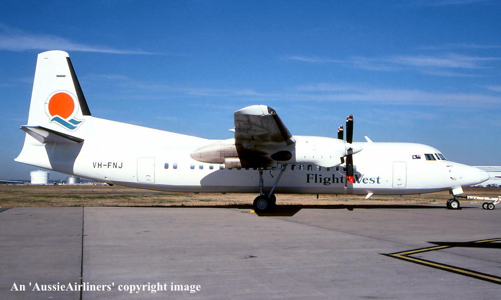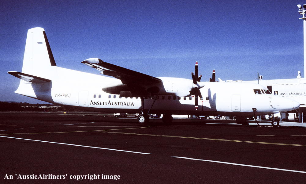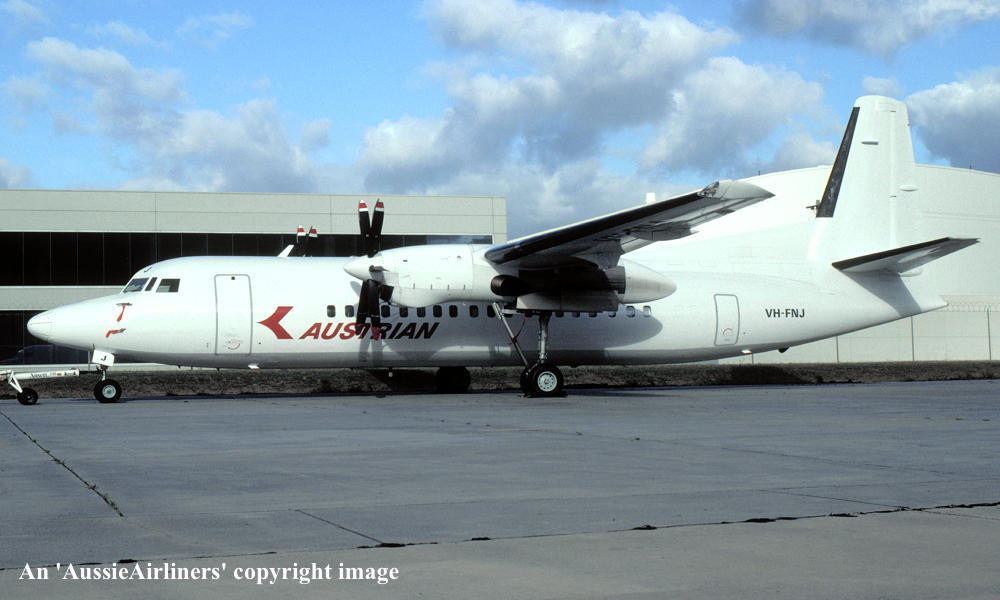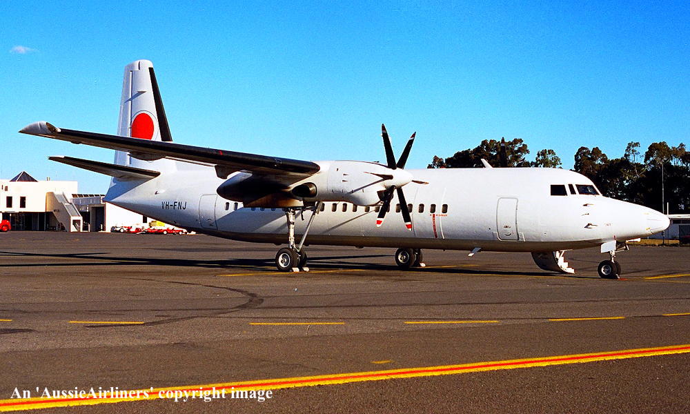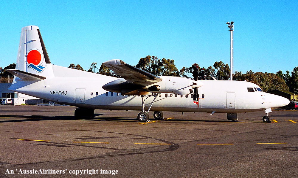 VH-FNJ. Fokker F27-050. c/n 20115. Was also registered as: OE-LFW; 9M-MGZ; SE-LEU; PH-EDJ; OB-2043P. |