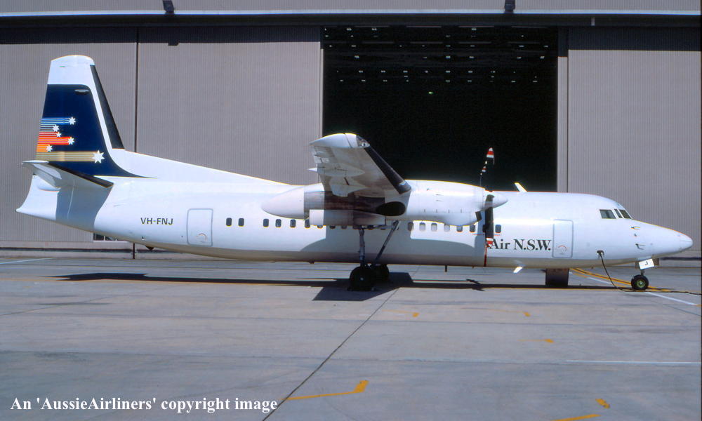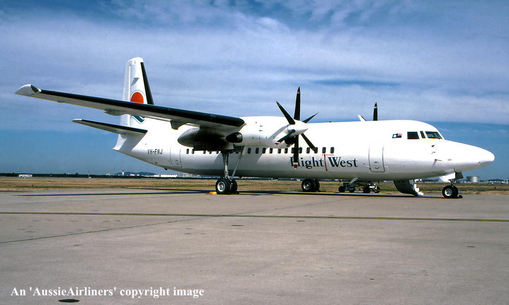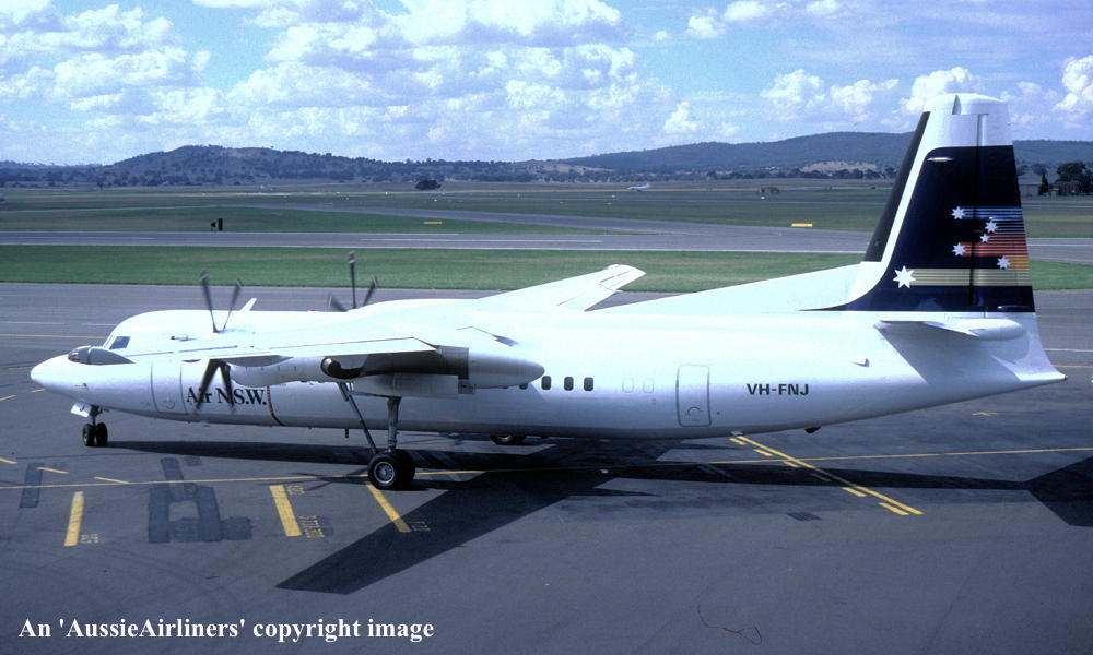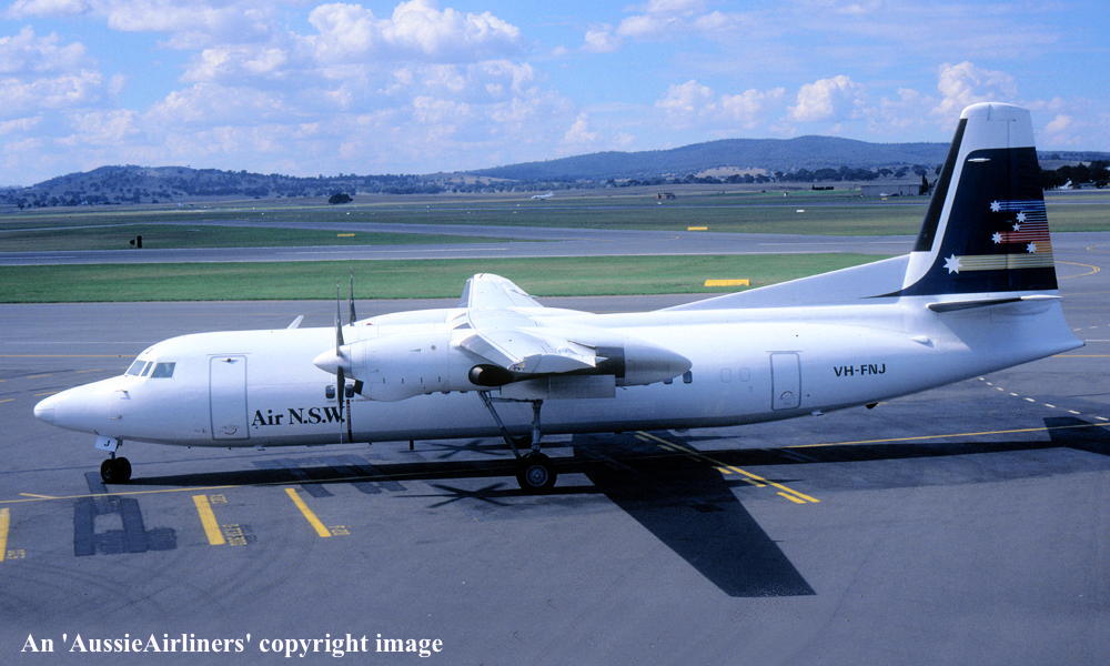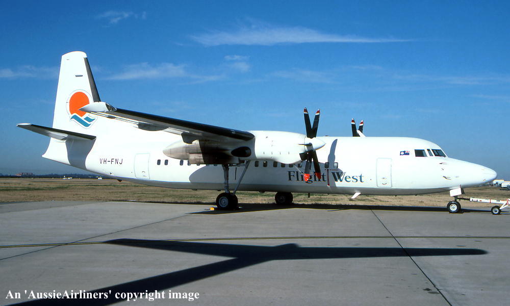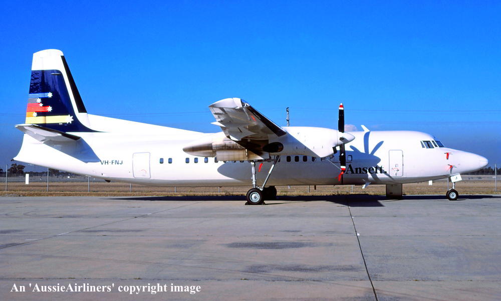 VH-FNJ. Fokker F27-050. c/n 20115. Was also registered as: OE-LFW; 9M-MGZ; SE-LEU; PH-EDJ; OB-2043P. |
