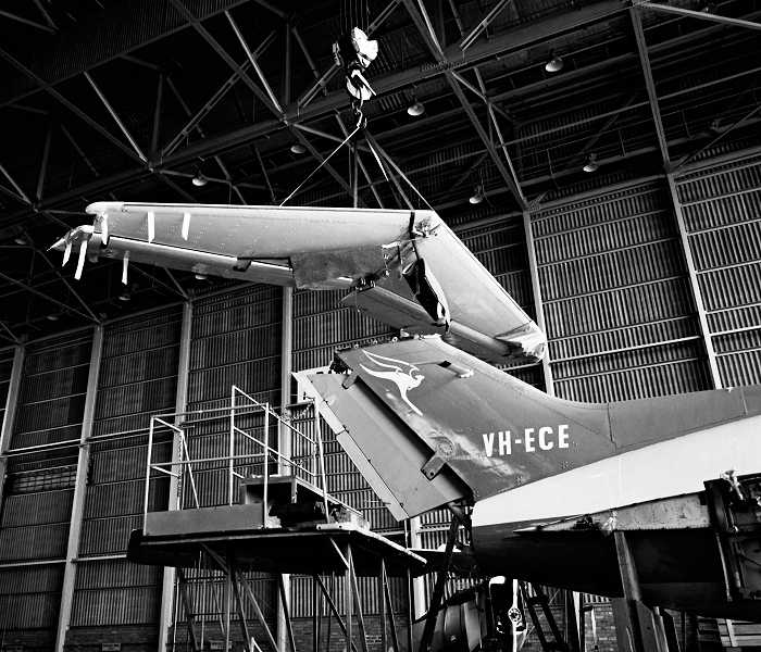 VH-ECE. Qantas - in the final livery being dismantled at Sydney Airport, October 1981.