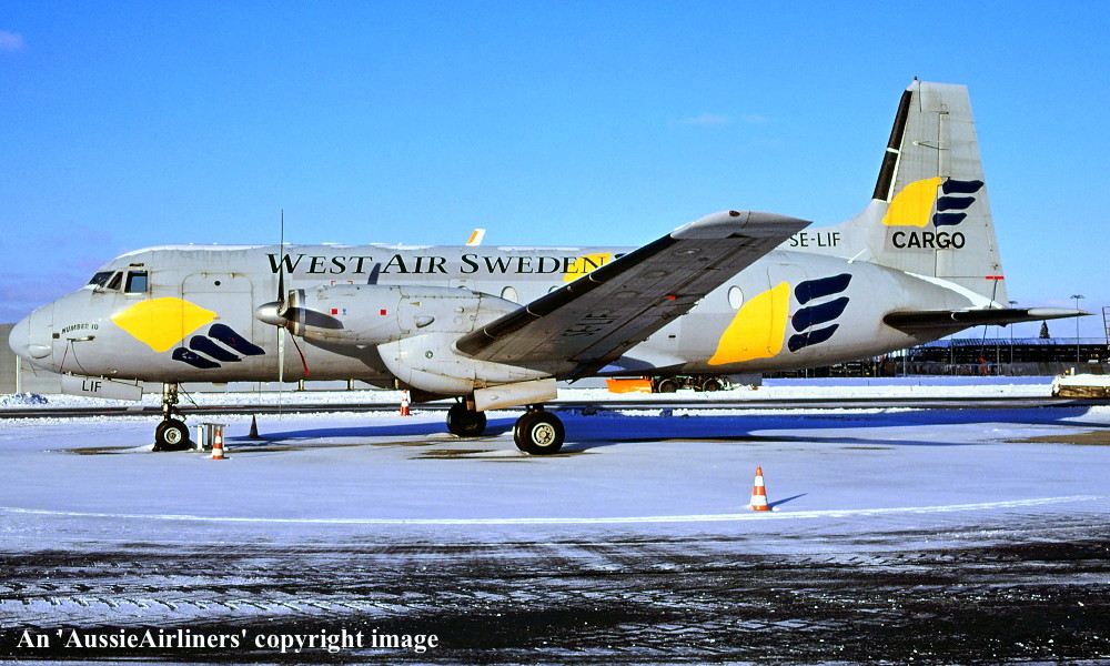 SE-LIF. West Air Sweden Cargo - 'Number 10' in the standard livery at an unknown airport, January 2007. (R. N. Smith Collection Copyright Image 0748-086.) |