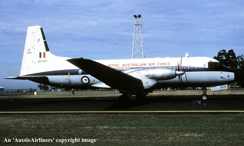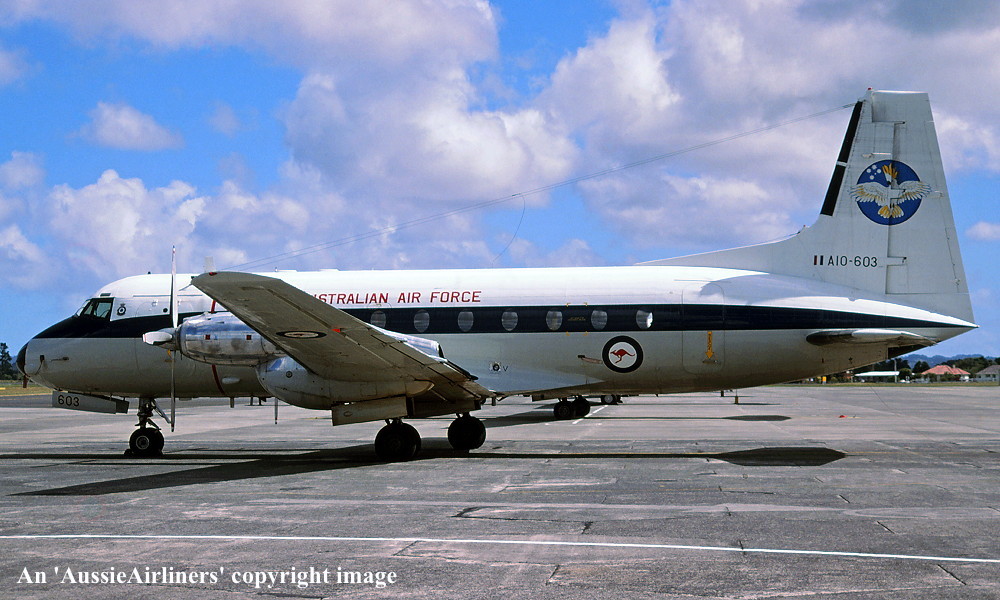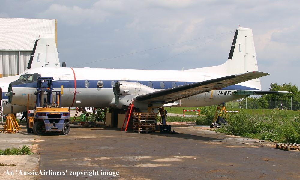 This aircraft was ordered new by the Australian Government for the Royal Australian Air Force It was constructed by Hawker Siddeley Aviation Limited, Woodford, Manchester - 1968 It was allocated the production number '122' First flown as 'A10-603' - September 13, 1968 Powered by Rolls Royce Dart 534 engines This aircraft was displayed at the Farnborough Air Show - September 1968 Accepted by the Royal Australian Air Force at Woodford as 'A10-603' - October 1968 Departed England on the ferry flight to Australia - October 1968 Arrived RAAF East Sale on completion of the ferry flight - October 30, 1968 Ferry route: Woodford - Athens - ? - New Delhi - Bangkok - Singapore - Denpasar - Darwin - Alice Springs - East Sale The aircraft was allocated to the School of Air Navigation, RAAF East Sale Transferred to No 32 Squadron, RAAF East Sale - July 01, 1989 Withdrawn from use at RAAF East Sale and stored - June 30, 2004 The aircraft had flown 19,998 hours with 18,260 cycles Sold by tender to Thameside Aviation, England - July 2004 Ferried RAAF East Sale - West Sale for storage as 'Turbo 603' - August 06, 2004 Entered onto the Australian Aircraft Register as VH-AMQ - February 02, 2005 Registered to Ross Michael Hornblower Departed West Sale on the ferry flight to the United Kingdom - February 16, 2005 Arrived Southend on completion of the ferry flight - February 20, 2005 Cancelled from the Australian Aircraft Register - September 25, 2008 The aircraft was observed stored at Southend in a deteriorating condition as 'VH-AMQ' - 2010 Sold to Skylark Hotel, Southend Airport - 2010 The airframe was lifted by crane onto the hotel site for preservation - July 19, 2010 The aircraft is missing many parts including the engines but the owners claim that the aircraft will be restored Current status - ? |