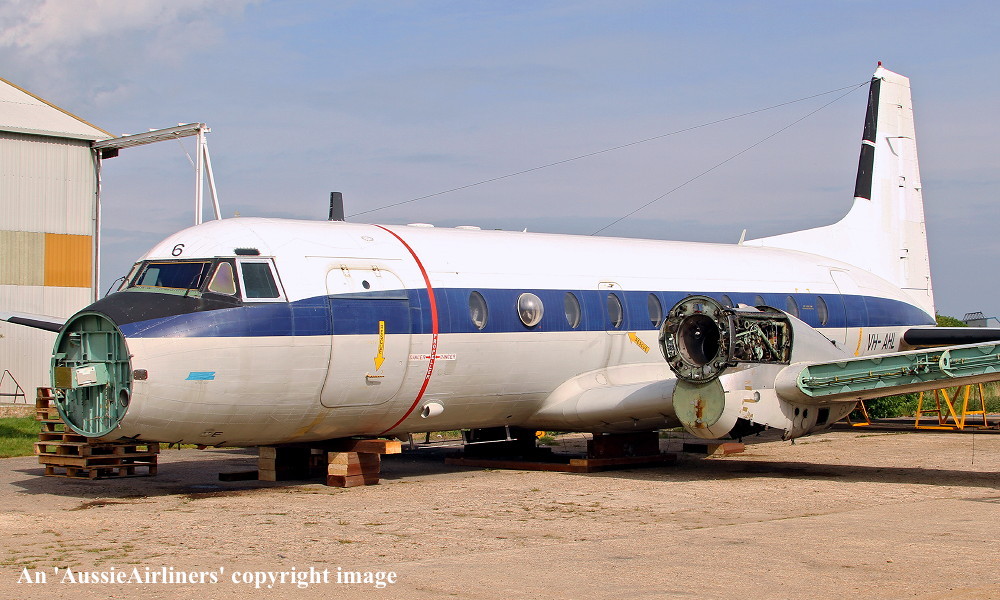 This aircraft was ordered new by the Australian Government for the Royal Australian Air Force It was constructed by Hawker Siddeley Aviation Limited, Woodford, Manchester - 1969 It was allocated the production number '133' First flown as 'A10-606' - February 24, 1969 Powered by Rolls Royce Dart 534 engines Accepted by the Royal Australian Air Force at Woodford as 'A10-606' - May 1969 Departed England on the ferry flight to Australia - May 1969 Arrived RAAF East Sale on completion of the ferry flight - May15, 1969 Ferry route: Woodford - Athens - ? - New Delhi - Bangkok - Singapore - Denpasar - Darwin - Alice Springs - East Sale The aircraft was allocated to the School of Air Navigation, RAAF East Sale Transferred to No 32 Squadron, RAAF East Sale - July 01, 1989 Withdrawn from use at RAAF East Sale and stored - June 30, 2004 The aircraft had flown 19,277 hours with 16,399 cycles Sold by tender to Thameside Aviation, England - July 2004 Ferried RAAF East Sale - West Sale for storage as 'Turbo 606' - August 06, 2004 Entered onto the Australian Aircraft Register as VH-AHL - February 04, 2005 Registered to Ross Michael Hornblower Departed West Sale on the ferry flight to the United Kingdom - February 27, 2005 Arrived Southend on completion of the ferry flight - March 03, 2005 Cancelled from the Australian Aircraft Register - September 25, 2008 The aircraft was observed stored at Southend in a deteriorating condition as 'VH-AMQ' - 2010 Sold to Skylark Hotel, Southend Airport - 2010 The airframe was lifted by crane onto the hotel site for preservation - July 19, 2010 The aircraft is missing many parts including the engines but the owners claim that the aircraft will be restored Current status - ? |