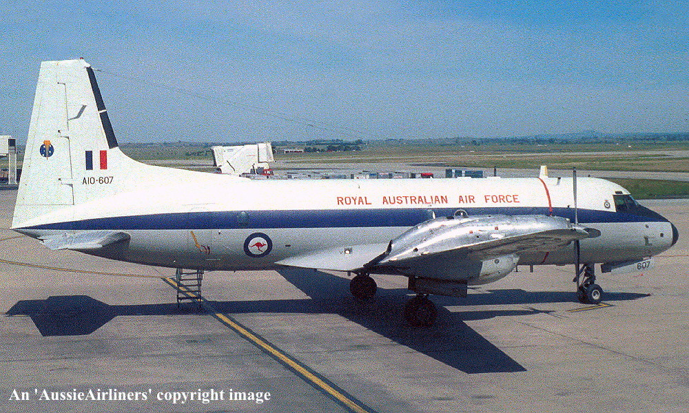 A10-607. Royal Australian Air Force - in the standard livery at Melbourne Tullamarine Airport, November 22, 1989. (G. Canciani Copyright Image 0748-117.) |
