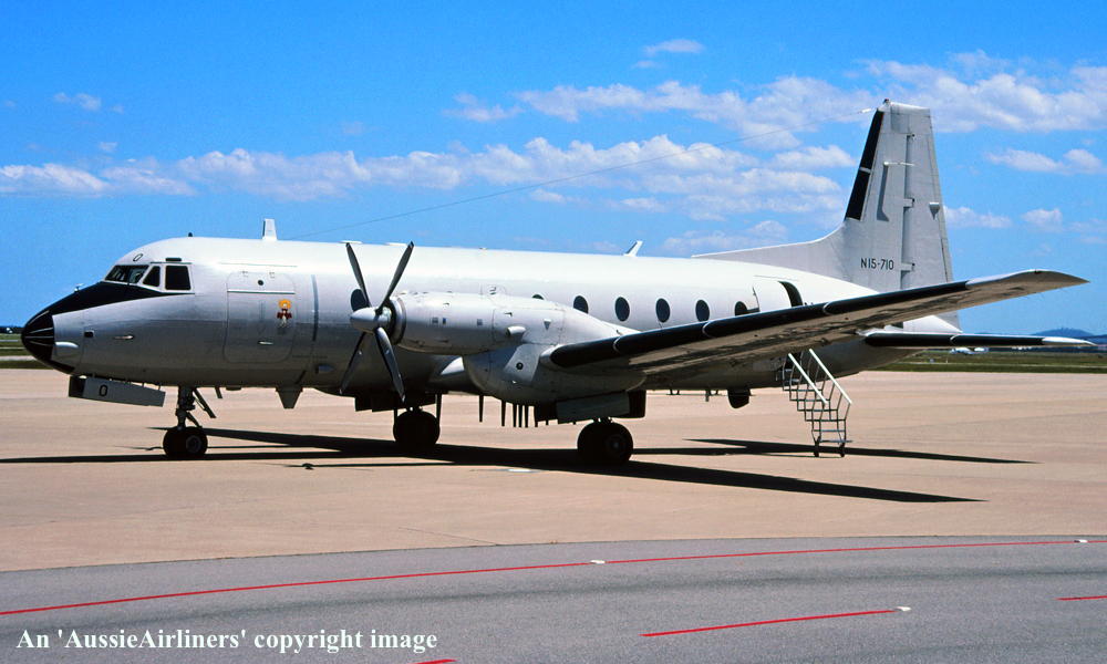 This aircraft was ordered new by the Australian Government for the Royal Australian Navy It was constructed by Hawker Siddeley Aviation Limited, Woodford, Manchester - 1973 It was allocated the production number '202' First flown as 'A15-710' - March 16, 1973 Powered by Rolls Royce Dart 534 engines Accepted by the Royal Australian Air Force at Woodford as 'N15-710' - August 1973 Departed England on the ferry flight to Australia - August 1973 Arrived HMAS Albatross, Nowra on completion of the ferry flight - August 17, 1973 Ferry route: Woodford - Athens - ? - New Delhi - Bangkok - Singapore - Denpasar - Darwin - ? - Nowra This aircraft was coded '801' The aircraft was allocated to 851 Squadron, Nowra It was fitted with specialised electronic equipment and used for electronic counter-measure training Transferred to 723 Squadron, Nowra - August 31, 1984 Withdrawn from use at RANAS Albatross and decommissioned - June 23, 2000 Ferried RANAS Albatross - RAAF East Sale for storage - June 26, 2000 The aircraft had flown 12,788 hours with 12,388 cycles It was sold by tender to TAG Aviation - 2001 The aircraft was stipped of all usable parts and cut up for scrap - March 2001 |