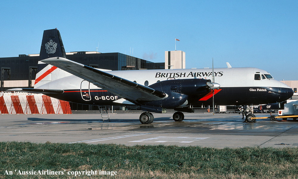 G-BCOF. British Airways - 'Glen Fiddich' in the standard livery at Birmingham Airport. December 1985. (R. N. Smith Collection Copyright Image 0748-025.) |