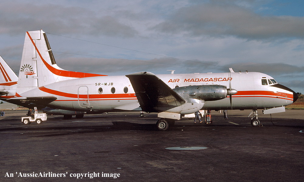 5R-MJB. Air Madagascar - in the standard livery at an unknown airport, May 1989. (R. N. Smith Collection Copyright Image 0748-027.) |