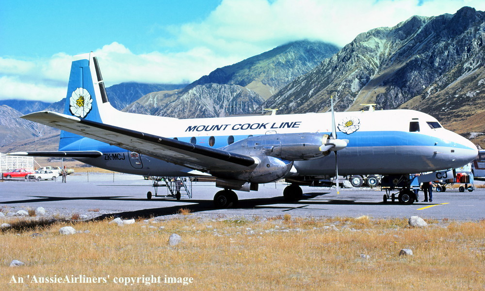 ZK-MCJ. Mount Cook Line - 'Rotorua' in the old livery at Queenstown Airport, March 1984. (R. N. Smith Collection Copyright Image 0748-019.) |