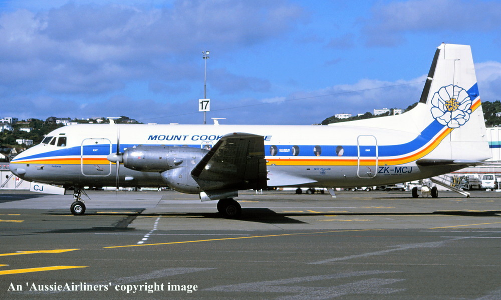 ZK-MCJ. Mount Cook Line - 'Rotorua' in the final livery at Wellington Airport, January 1994. (R. N. Smith Collection Copyright Image 0748-041.) |