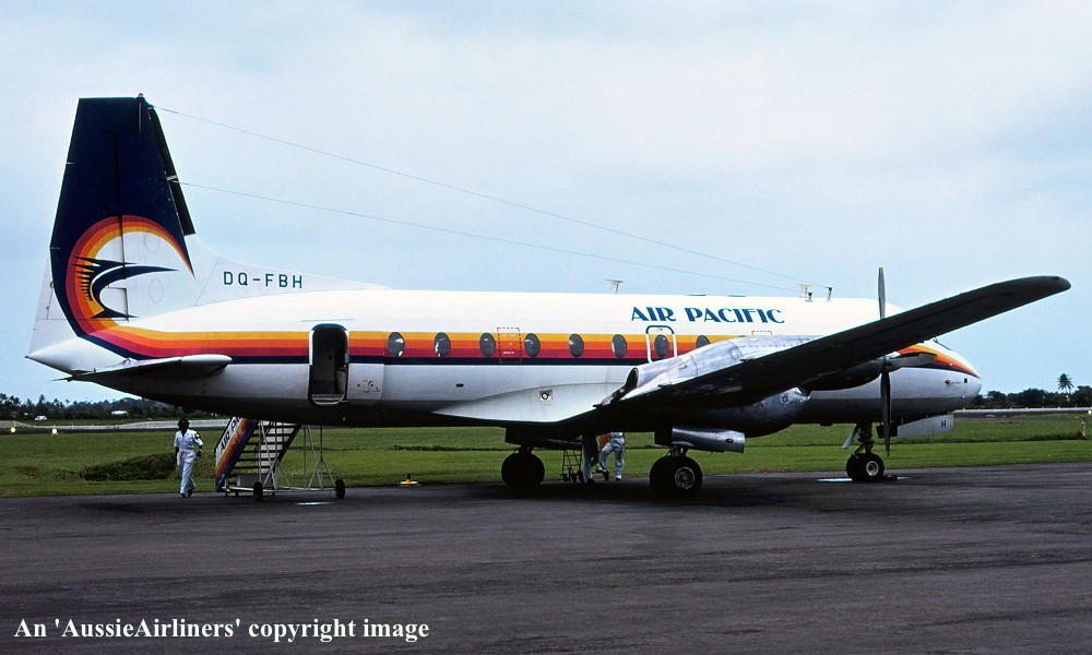 DQ-FBH. Air Pacific - in the standard livery at Nausori Airport, July 19, 1979. (R. N. Smith Collection Copyright Image 0748-060.) |