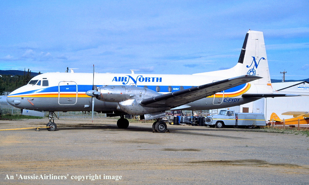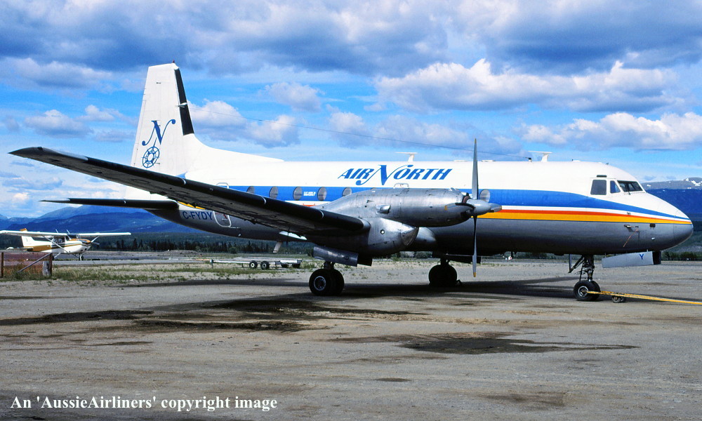 This aircraft was built by Hawker Siddeley Aircraft Limited, Woodford, Manchester, England - 1968 It was built for Fiji Airways Entered onto the Fijian Aircraft Register as VQ-FBH - August 30, 968 Registered to Fiji Airways Ltd, Suva, Fiji First flown at Woodford as 'VQ-FBH' - November 27, 1968 Departed Woodford on the ferry flight to Fiji - November 1968 It arrived at Nadi on completion of the ferry flight - December 08, 1968 Reregistered as DQ-FBH - October 01, 1971 Fiji Airways Limited changed its name to Air Pacific Limited - October 31, 1971 The airline relocated its Head Office to Nadi The aircraft was withdrawn from use at Nadi - 1971 It was sold to Mount Cook Airline, Christchurch - October 06, 1979 Cancelled from the Fijian Aircraft Register - October 06, 1979 Entered onto the New Zealand Aircraft Register as ZK-MCJ - October 06, 1979 Registered to Mount Cook Airline Limited, Christchurch Ferried Nadi - Christchurch on delivery to Mount Cook - October 07, 1979 The aircraft was named 'Rotorua' (long lake) Operated its first revenue service - ? Operated its final revenue service Mount Cook - Christchurch as NZ5718 - December 31, 1995 It was withdrawn from use and stored at Christchurch It was sold to Air North Charter and Training Ltd, Whitehorse, Canada - June 1996 Departed Christchurch on the ferry flight to Canada via Norfolk Island and Brisbane - June 26, 1996 It was observed at Chitose (Japan) enroute to Canada - June 30, 1996 It arrived at Whitehorse having completed the ferry flight to Canada - ? Cancelled from the New Zealand Aircraft Register - July 08, 1996 It was observed at Whitehorse in the Mount Cook livery as 'ZK-MCJ' - July 25, 1996 Entered onto the Canadian Aircraft Register as C-FYDY - August 29, 1996 Registered to Air North Charter and Training Limited, Whitehorse Certificate of Airworthiness (CofA) issued - September 03, 1996 It was operated by Air North in the basic Mount Cook livery until it was repainted in 2006 Over the years it was withdrawn from service during the Canadian winter season and stored at Whitehorse Operated its final revenue service - January 21, 2015 Route: Whitehorse - Dawson City - Old Crow - Inuvik - Dawson City - Whitehorse It was withdrawn from service and used as a ground trainer It was announced that this aircraft would be returned to an airworthy condition - January 2016 This aircraft was returned to service for the 2016 North Summer period Withdrawn from service at Whitehorse - December 22, 2016 It was parted out for spares to support the operations of the airline's other aircraft Cancelled from the Canadian Aircraft Register - February 27, 2019 |