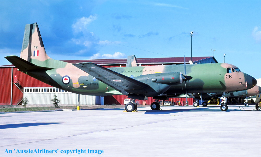 NZ7626. Royal New Zealand Air Force - in the standard camouflage livery at Whenuapai Airport, February 1985.