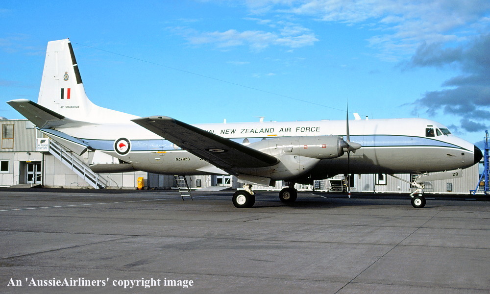 NZ7628. Royal New Zealand Air Force - in the standard 'VIP' livery at Auckland Airport, June 1983.