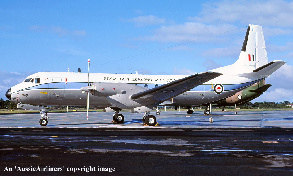 NZ7629. Royal New Zealand Air Force - in the standard 'VIP' livery at Whenuapai Airport, February 1985. (R. N. Smith Collection Copyright Image 0748-055.) |
