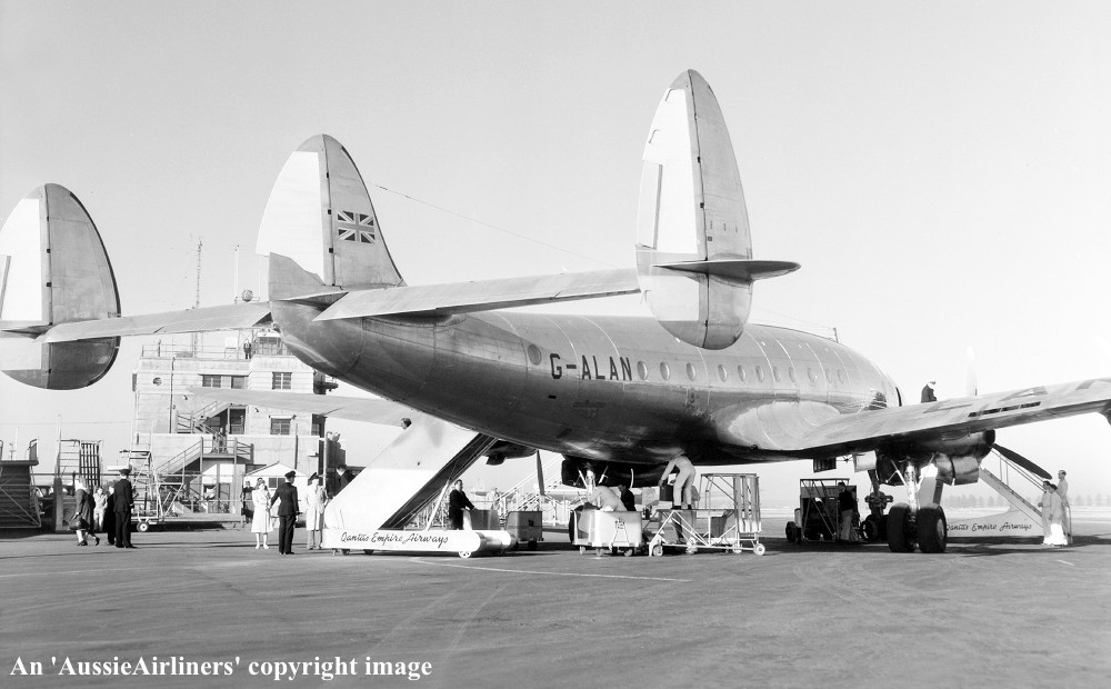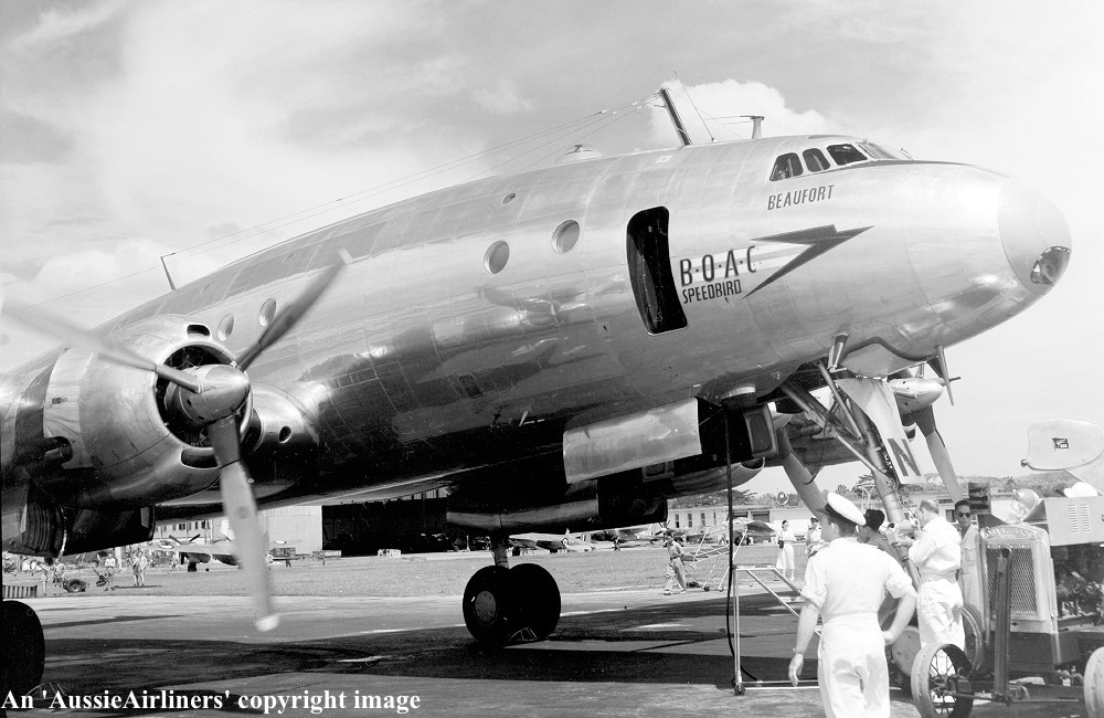 G-ALAN. BOAC - 'Beaufort' in the all metal livery at Sydney Kingsford Smith Airport, August 03, 1948. (Whites Aviation WA-14690-F Copyright Image 1802-250.) |