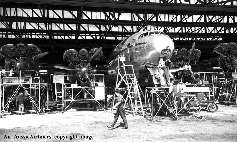 VH-EAD. Qantas Empire Airways - 'Charles Kingsford Smith' in the original livery at Sydney Kingsford Smith Airport, April 07, 1948. (Qantas Heritage Collection Copyright Image 1802-110.) |