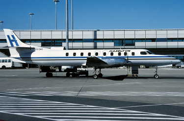 First flown as N3030S - August 1994 Powered by Garrett Turbine TPE331-12U engines Sold to Hazelton Airlines - November 1994 Entered onto the Australian Aircraft Register as VH-DMO - November 21, 1994 Registered to Hazelton Air Services Pty Ltd Arrived Cudal, N.S.W. at conclusion of delivery flight - December 3, 1994 Aircraft was configured to seat 19 passengers Bodas Pty Ltd acquired 20% ownership of Hazelton Airlines - October 2000 Bodas Pty Ltd was the holding company for TNT / News Ltd Advertised for sale - January 2001 Hazelton Airlines became an Ansett subsidiary when Bodas Pty Ltd gained 100% ownership - May 2001 Ansett suspended all operations due to bankruptcy - September 13, 2001 Operated final revenue service Bathurst-Sydney as AN7450 - September 14, 2001 A separate administrator to Ansett was appointed to handle the sale of the 'Hazelton' subsidiary Arrived Perth at conclusion of delivery flight for sale to Pearl Aviation - January 4, 2002 Sold to Pearl Aviation, Perth - January 14, 2002 Rergistered as VH-OYN - January 18, 2002 Registered to Pearl Aviation Australia Pty Ltd - August 17, 2005 Current as of 2011 |