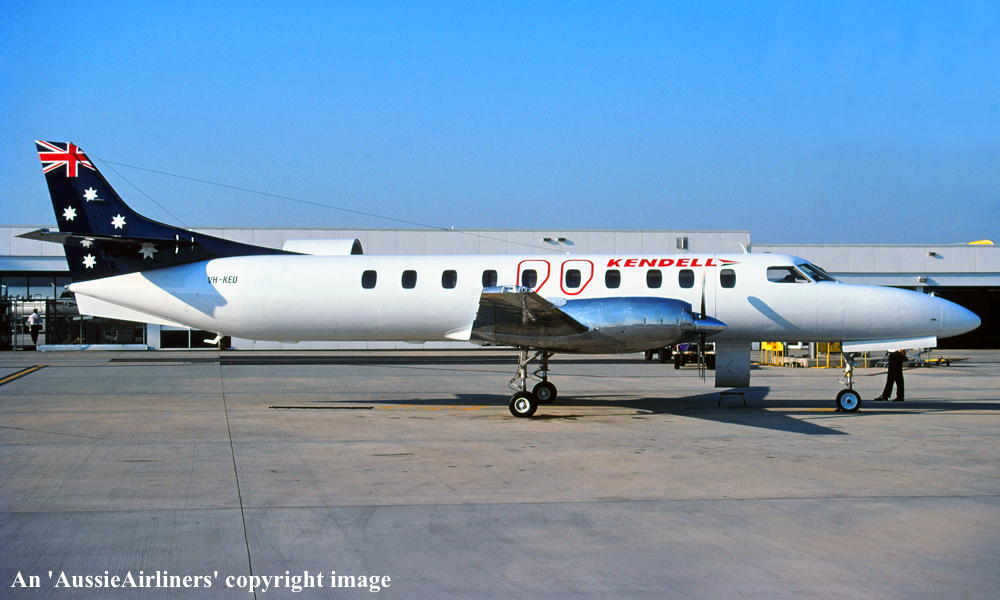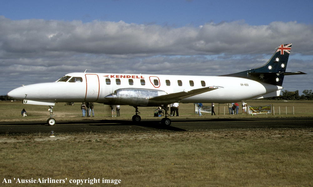 This aircraft was first flown as 'N30326' - October 1993 Powered by Garrett Turbine TPE331-12U engines Registered to Fairchild Aircraft Inc Sold to Kendell Airlines - 1994 This was Kendell's sixth Metro 23 Entered onto the Australian Aircraft Register as VH-KEU - March 10, 1994 Registered to Kendell Airlines (Australia) Pty Ltd. Wagga Wagga It arrived at Wagga Wagga on completion of the delivery flight as N30236 - March 22, 1994 Delivery route: San Antonio - Oakland - Honolulu - Pago Pago - Sydney - Wagga Wagga The aircraft was named 'Sunraysia Chaffey Trail' Operated its first revenue service - March 25, 1994 Ansett suspended all operations due to bankruptcy - September 13, 2001 Operated its final revenue service Olympic Dam - Adelaide (West Beach) as AN5479 - September 13, 2001 Returned to service to operate Adelaide (West Beach) - Broken Hill - September 27, 2001 Kendell Airlines was sold by the Administrators to Australiawide Airlines - August 01, 2002 Australiawide Airlines was renamed Regional Express Airlines (REX) - August 06, 2002 REX commenced services - August 06, 2002 Registered to Australiawide Airlines Ltd - September 19, 2002 Registered to Regional Express Holdings Ltd - May 27, 2005 Leased to Pel-Air Aviation Pty Ltd as the registered operator - December 22, 2006 Operated by Pel-Air mainly from its Adelaide base Current with Pel-Air - December 2010 |