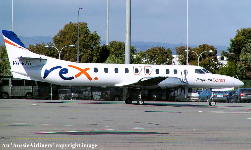 VH-KEU. REX Regional Express - in the standard livery at Adelaide West Beach Airport, June 02, 2003. (R. Brown Copyright Image 1040-372.) |