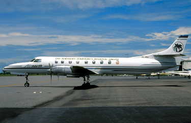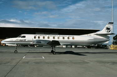 First flown as N5490M - July 1978 Powered by Garrett Turbine TPE331-11U engines Delivered to Stillwell Aviation Pty Ltd - August 23, 1978 Entered onto the Australian Aircraft Register as VH-SWN - August 23, 1978 Registered to Civil Flying Services (WA) Pty Ltd Leased to Jet Charter Airlines - October 1978 Leased to MacRobertson Miller Airlines - 1979 to 1980 Leased to Skywest Airlines - February 1980 Sold to Air Albatross - November 1983 Entered onto the New Zealand Aircraft Register as ZK-SWA Sold to Kendell Airlines - May 17, 1986 Entered onto the Australian Aircraft Register as VH-WGY - June 17, 1986 Withdrawn from use at Wagga - July 22, 1994 Sold to International Air Parts - August 12, 1994Leased to Air North Regional - August 21, 1994 Reregistered as VH-ANJ - October 12, 1994 Leased to Falcon Aviation - May 31, 1995 Returned to Air North at end of lease - September 5, 1995 Sold to Hardy Aviation (NT) Pty Ltd - September 1998 Reregistered as VH-MMY - October 23, 1998 Damaged beyond repair at Darwin, NT, Australia - July 16, 2002 Cessna 182 VH-SVA was being hand started when it got away from the pilot It smashed into the rear fuselage of VH-MMY causing considerable damage that was uneconomical to repair Cancelled from the Australian Aircraft Register - January 28, 2003 Observed parked in derelict condition at Darwin - December 2003 |