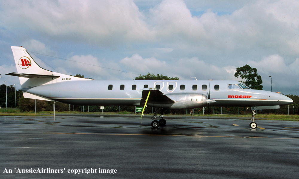 VH-UUC. Macair - in the standard livery at Brisbane Airport, January 2004. (R. N. Smith Collection Copyright Image 1040-026.) |