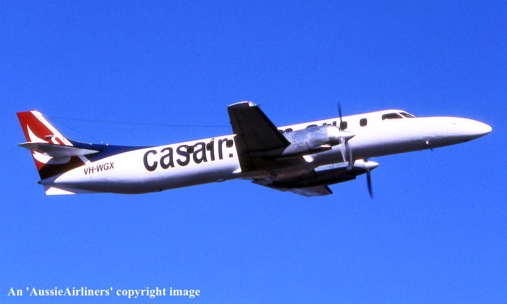 This aircraft was first flown as 'N1015B' - September 1979 Powered by Garrett Turbine TPE331-3 engines Entered onto the Australian Aircraft Register as VH-WGX - March 20, 1980 Registered to Williams Aviation Pty Ltd Leased to Intercity Airlines as the registered operator - April 1980 Leased to Bush Pilots Airwayd Pty Lyd as the registered operator - January 19, 1981 Registered to Air Queensland Pty Ltd - January 08, 1982 Registered to Premiair Aviation Pty Ltd t/a Kendell Airlines - April 30, 1983 Operated its first Kendell revenue service - May 05, 1983 Registered to Kendell Airlines (Australia) Pty Ltd - October 10, 1983 Kendell Airlines had became an Ansett subsidiary when Bodas Pty Ltd gained 100% ownership - June 1990 Bodas Pty Ltd was the holding company for TNT / News Ltd Operated its final revenue service Melbourne (Tullamarine) - Albury - Wagga Wagga as KD2274 - April 28, 1994 Sold to International Air Parts, Brisbane - May 1994 Ferried Wagga Wagga - Brisbane on delivery to IAP - May 17, 1994 Registered to International Air Parts Pty Ltd - May 29, 1994 Leased to Qwestair Pty Ltd as the registered operator - June 1994 Leased to Pel-Air Aviation as the registered operator - November 1995 Registered to International Aviation Pty Ltd - August 27, 1997 Leased to Horizon Airlines Pty Ltd as the registered operator - December 11, 1998 Registered to R.J. Halpin, Centennial Park, NSW - January 12, 2004 Registered to Airtex Aviation Pty Ltd - November 09, 2005 Registered to Casair Pty Ltd, Canning Vale, WA - June 21, 2006 Current with Casair - 2010 |