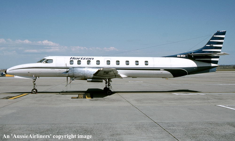 VH-WGX. Horizon - in the standard livery at Melbourne Tullamarine Airport, March 1999. (R. N. Smith Collection Copyright Image 1040-348.) |