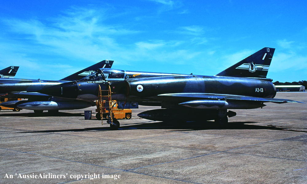 A3-13. Royal Australian Air Force - in the camouflage livery with the 'No 77 Squadron' tail badge at an unknown airport, date unknown.