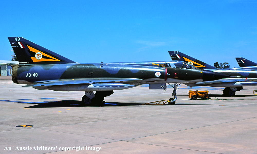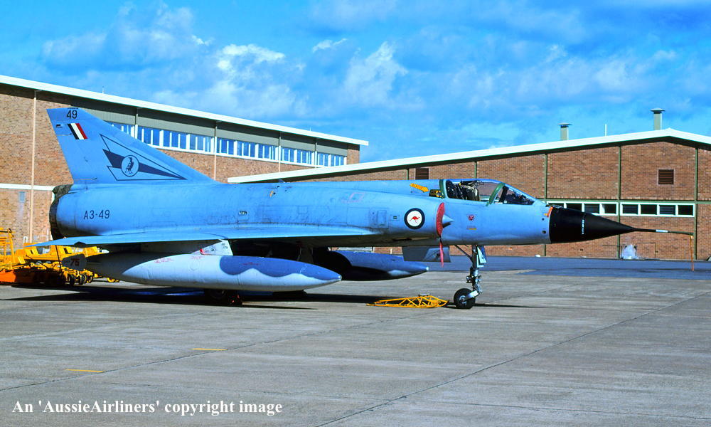 A3-49. Royal Australian Air Force - in the camouflage livery with the 'No 2 OCU' tail badge at Newcastle Williamtown Airport, November 1980. (R. N. Smith Collection Copyright Image 2600-161.) |