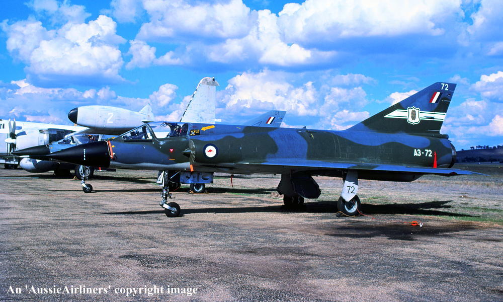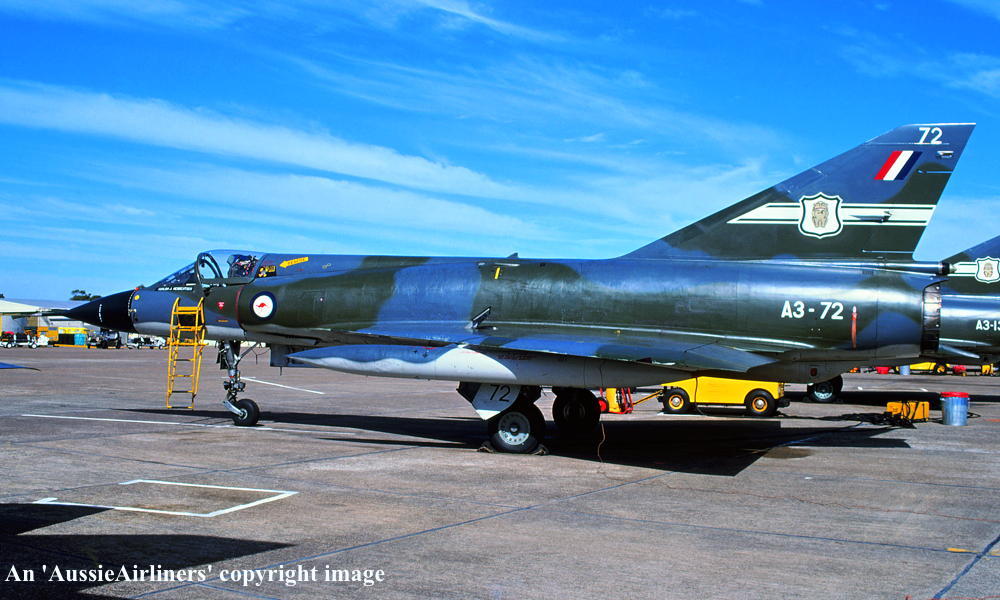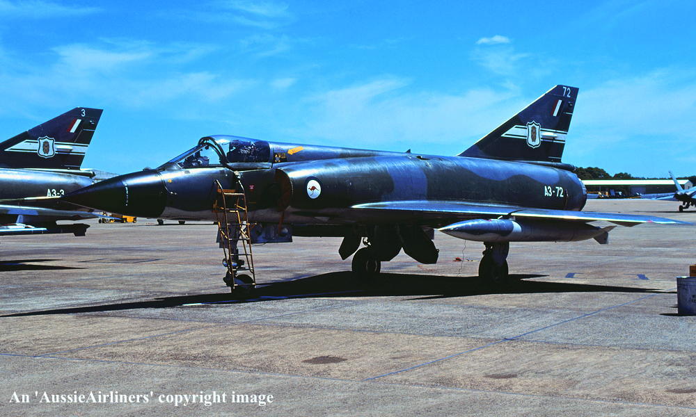 A3-72. Royal Australian Air Force - in the camouflage livery with the 'No 77 Squadron' tail badge at Newcastle Williamtown Airport, May 1988. (R. N. Smith Collection Copyright Image 2600-167.) |