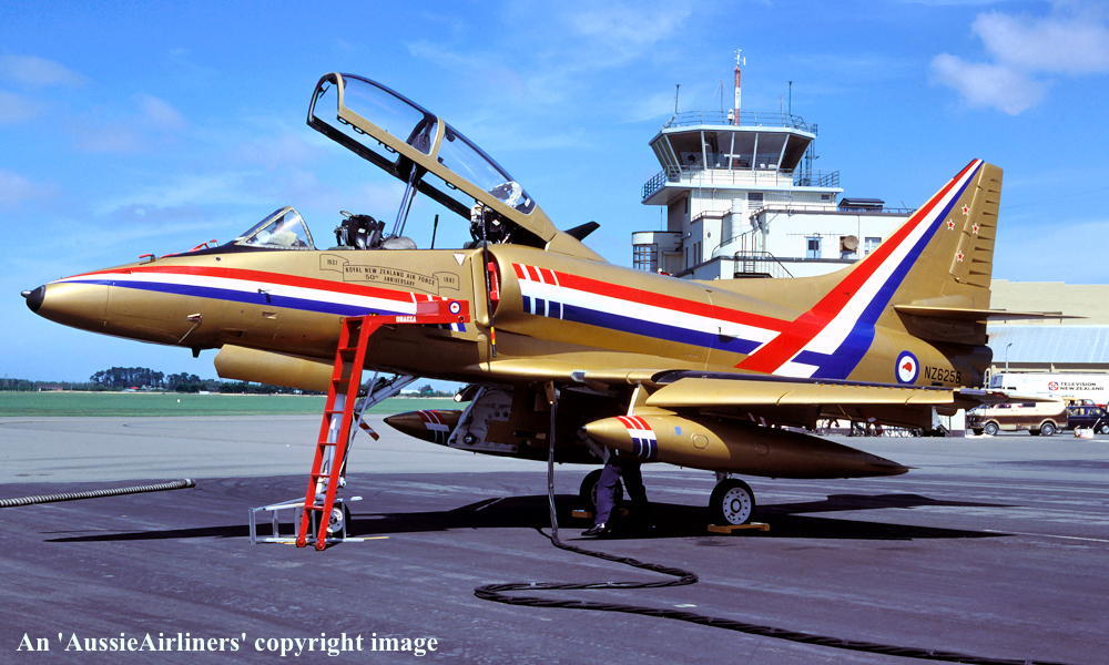 NZ6256. Royal New Zealand Air Force - in the special 'RNZAF 50th Anniversary' livery at the RNZAF Base Wigram, date unknown. (J. Mounce Copyright Image 2600-098.) |
