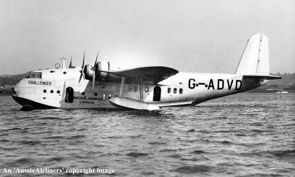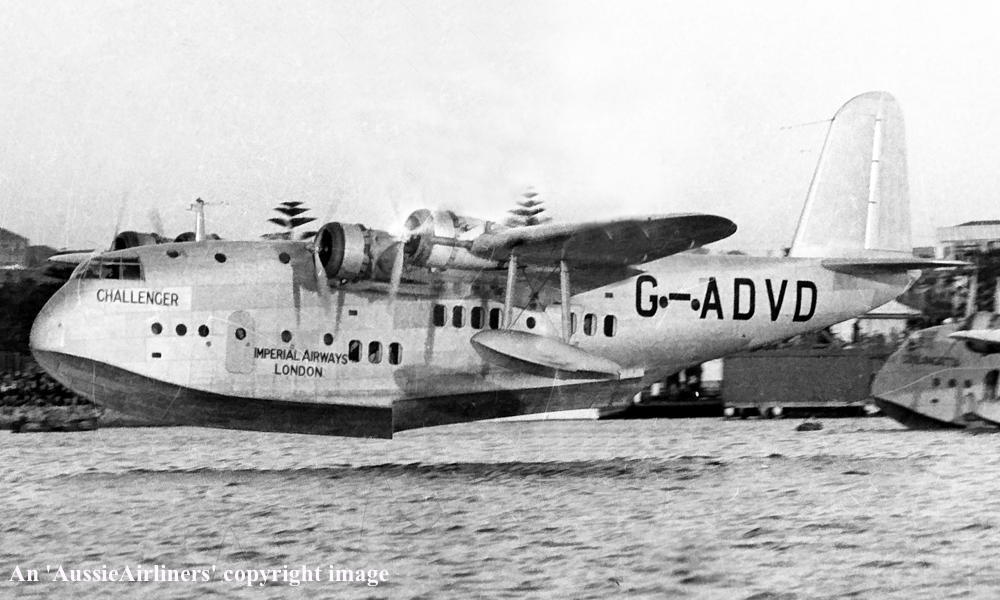 G-ADVD. Imperial Airways London - 'Challenger' in the all-metal livery at Sydney Rose Bay, November 1938. (R. N. Smith Collection Copyright Image 2545-266.) |