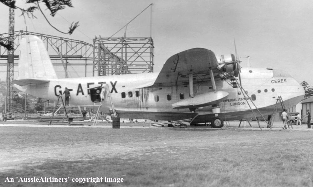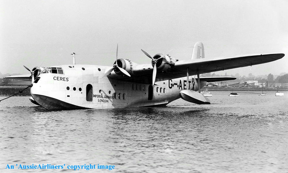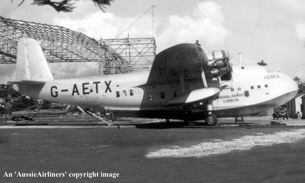 G-AETX. Imperial Airways London - 'Ceres' in the all-metal livery at Sydney Rose Bay, circa 1938. (Qantas Heritage Collection Copyright Image 2545-655.) |