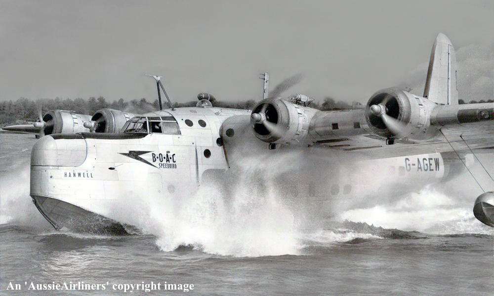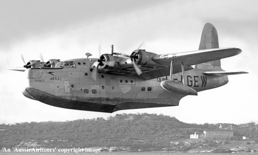 G-AGEW. B.O.A.C. - 'Hanwell' in the standard livery at Sydney Rose Bay, date unknown. (P. Sheehan Collection Copyright Image 2545-971.) |