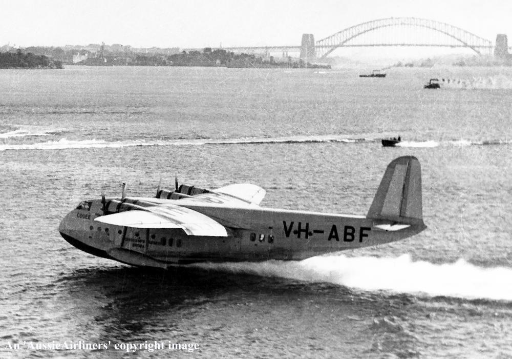VH-ABF. Qantas Empire Airways - 'Cooee' in the standard livery at Rose Bay Sydney, May 1938. (R. N. Smith Collection Copyright Image 2545-239A.) |