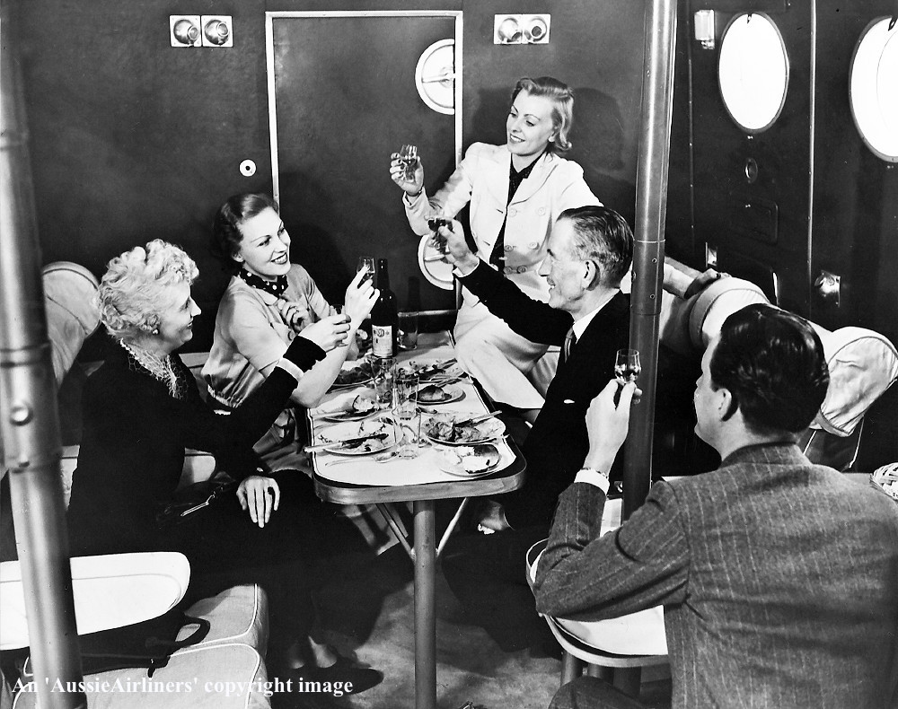 VH-ABF. Qantas Empire Airways - 'Cooee' in the standard livery at Rose Bay Sydney, date unknown. This was a publicity shot taken inside the rear cabin. (R. N. Smith Collection Copyright Image 2545-259.) |