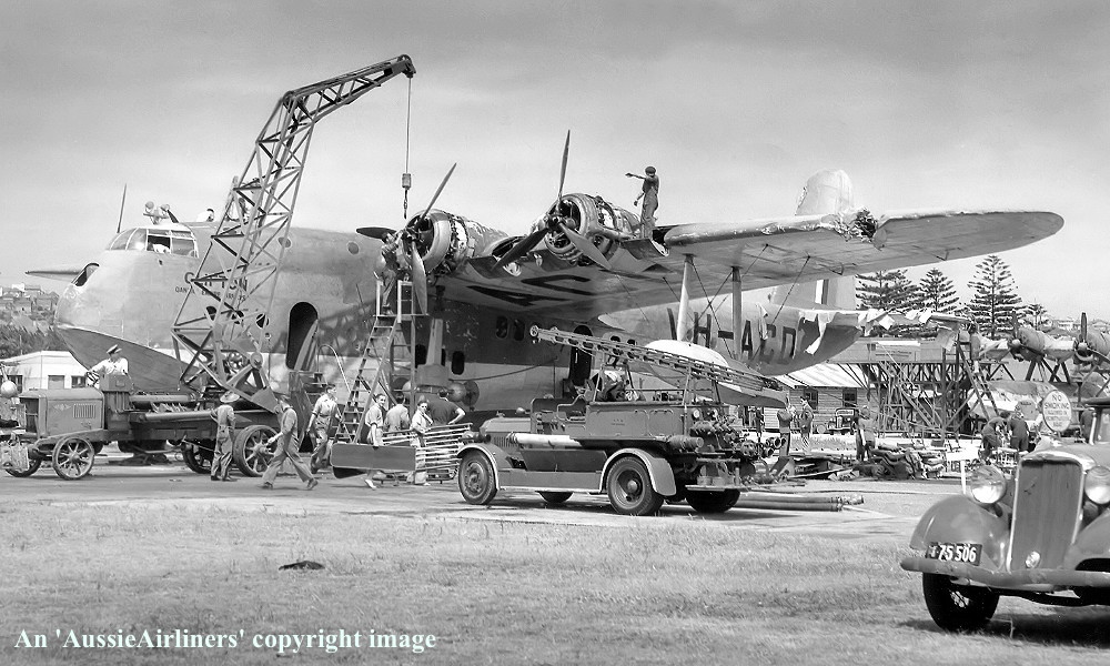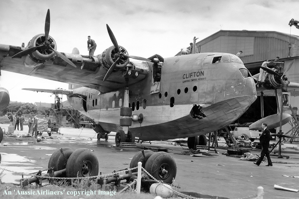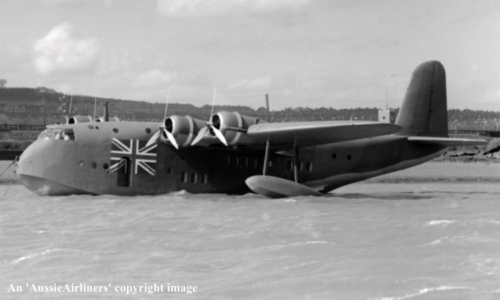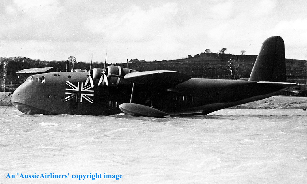 This aircraft was the forty-first Empire boat completed and flown by Short Bros at Rochester, Kent The order was placed by Imperial Airways, London - June 07, 1939 It was completed as a S-33 Empire Class boat with 920 h.p. Bristol Perseus XII engines The standard fuel capacity was 650 gallons It had an all-up weight of 40,500 lbs (18,380 kg) which was later increased to 53,000 lbs (24,200 kg) The cruising speed was 164 m.p.h. with a standard range of 760 miles / 1,245 km Entered onto the British Aircraft Register (CofR 9036/1) - January 27, 1939 Registered to Imperial Airways Limited, London Launched as 'G-AFPZ' at the Short Bros Seaplane Works, The Medway, Rochester - April 1939 First flown as G-AFPZ - April 09, 1940 Certificate of Airworthiness (CofA 6816) Issued - April 20, 1940 Delivered to British Overseas Airways - April 22, 1940 The aircraft was named 'Clifton' Registered to British Airways Corporation, Bristol (CofR 9036/2) - August 22, 1940 This aircraft was part of the aircraft pool operated by Imperial Airways and Qantas Empire Airways on services between Southampton, England and Sydney, Australia Qantas Empire Airways crews flew the aircraft on the Sydney - Singapore - Sydney sector of this route between July 1938 and October 1941 Qantas Empire Airways crews then took over the Singapore - Karachi - Singapore sector of the route from October 1941 to February 1942 when operations ceased due to Japanese war activities in South-East Asia 'Clifton' was isolated in the eastern sector of Horseshoe Route - February 1942 Due to the wartime emergency this aircraft was leased directly by B.O.A.C. to the R.A.A.F. - March 1942 Impressed by the Royal Australian Air Force as 'A18-14' - March 09, 1942 It was converted for general coastal reconnaissance duties at Rose Bay, Sydney The aircraft was fitted with a temporary dorsal gun position equipped with 0.303 machine guns Cancelled from the British Aircraft Register - July 13, 1942 Ownership was transferred to Qantas Empire Airways in exchange for the Qantas aircraft 'VH-ABF' VH-ABF 'Cooee' had been isolated in the western sector when Horseshoe Route was cut during WWII Released by the R. A.A.F to Qantas Empire Airways Ltd at Rose Bay, Sydney - June 25, 1943 Entered onto Australian Aircraft Register as VH-ACD (CofR 785) - July 01, 1943 Registered to Qantas Empire Airways Ltd, Sydney This aircraft was destroyed in a night landing accident at Rose Bay, Sydney - January 18, 1944 Flight crew: Captains W. Hussey, A. L. Ashley Captain Ashley had been undergoing night landing practice under instruction from Captain Hussey The aircraft bounced on landing, stalled and the hull was torn open on impacting the water again It was brought ashone at Rose Bay but due to salt water incursion it was deemed unrepairable It was subsequently broken up for spare parts at Rose Bay, Sydney Cancelled from Australian Aircraft Register - January 18, 1944 |