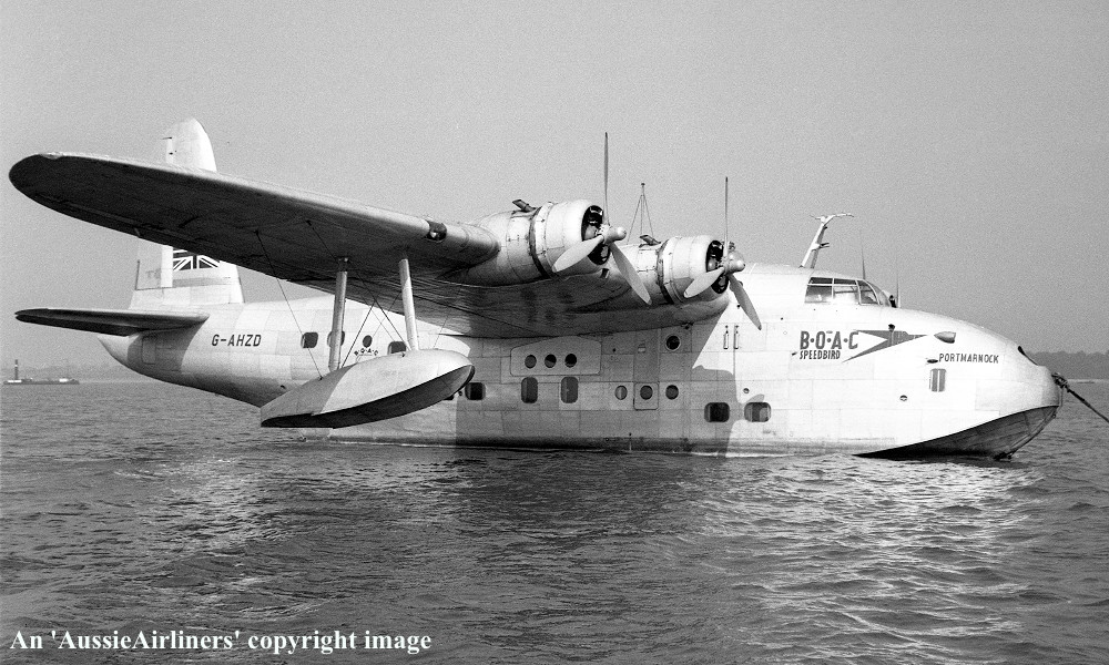 This aircraft was built by Short Bros & Harland at Belfast as a Sunderland Mk III - 1944 It was the 5th aircraft in an order for 6 under the Conctract # Acft.227 with the construction number 'SH.1195' Delivered to the Royal Air Force at Wig Bay, Stranraer, Scotland - October 04, 1944 Allocated the Royal Air Force serial number 'NJ257' Taken on-charge by No. 57 Maintenance Unit, Wig Bay - October 04, 1944 Transferred to R.A.F. No. 4 Squadron, Coastal Operational Traning Unit - October 28, 1944 Transferred to Short Bros & Harland, Belfast - April 26, 1945 Converted to a Sunderland Mk V standard at Belfast Returned to No. 57 Maintenance Unit, Wig Bay - November 14, 1945 Sold to Short Bros & Harland, Belfast as being surplus to requirements - April 09, 1946 Converted to Sandringham Mk V Plymouth Class at Belfast It was allocated the Short Conversion Number 'SH.40C' The conversion to civilian standards included seating for 30 passengers Entered onto the British Aircraft Register as G-AHZD (CofR No. 10471/1) - July 15, 1946 Registered to The Ministry of Supply, London (later changed to The Ministry of Civil Aviation) The Certificate of Airwothiness (CofA No.8234) issued - May 28, 1947 To view the 'British Certificate of Airworthiness' click 'HERE' Delivered to British Overseas Airways Corporation - May 28, 1947 Registered to British Overseas Airways Corporation, London (CofR No. 10474/2) - May 31, 1947 The aircraft was named 'Portmarnock' Entered service with B.O.A.C. - June 13, 1947 Withdrawn from use and stored at Hythe , Southampton Water - August 13, 1949 The Certificate of Airworthiness (CofA) expired - August 25, 1949 Sold to Qantas Empire Airways Ltd - June 02, 1951 Registered to Qantas Empire Airways Limited, Sydney (CofR R.1000/3) - July 03, 1951 Delivered to Qantas Empire Airways - August 10, 1951 Cancelled from the British Aircraft Register - August 10, 1951 Entered onto the Australian Aircraft Register as VH-EBV - August 10, 1951 The aircraft was named 'Pacific Warrior' Utilised on services to New Caledonia, New Hebrides, Fiji and Papua New Guinea Withdrawn from use at Sydney (Rose Bay) - June 06, 1955 Cancelled from the Australian Aircraft Register - August 03, 1955 Broken up for scrap at Sydney (Rose Bay) - August 1955 |