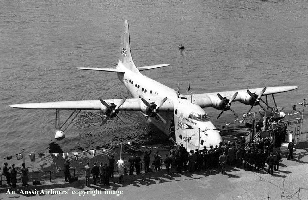 This aircraft was built by Short Bros at Rochester, Kent It was built to the U. K. Ministry of Transport Contract No. 2688 for 8 Sunderland Mk IV aircraft Allocated the Royal Air Force serial NJ202 Prior to completion the aircraft was redesignated a Seaford Mk I This airframe was not taken on-charge by the Royal Air Force Declared suplus to requirements and it was returned to the Ministry of Supply - 1947 Transferred to Short Bros & Harland, Belfast for conversion to a Solent Mk III - September 25, 1947 This aircraft was configured to seat 39 passengers Entered onto the British Aircraft Register (CofR 12077/1) as G-AKNO - December 02, 1947 Registered to Ministry of Transport and Civil Aviation, London Certificate of Airworthiness (CofA 10242) issued - April 01, 1949 Leased to British Overseas Airways Corporation as registered operator - April 01, 1949 Delivered to BOAC at Hythe as 'Seaforth' - April 01, 1949 Flown Hythe - London where the aircraft alighted on the Thames River - May 05, 1949 Was taxied to Limehouse Reach, opposite the Tower of London Aircraft was named 'City of London' by the Lord Mayor of London - May 10, 1949 Name chosen the celebrate the 40th anniversary of the commencement of British Civil Aviation It operated its first revenue service - June 01, 1949 Operated final revenue service and withdrawn from use - November 10, 1950 Returned to Ministry of Transport and Civil Aviation - November 10, 1950 Returned to Short Bros & Harland at Belfast and placed in open storage - November 10, 1950 Cancelled from the British Aircraft Register - December 20, 1950 Prepared for sale Trans Oceanic Airways Pty Ltd, Australia Painted in the Trans Oceanic livery at Belfast prior to acceptance Returned to the British Aircraft Register as G-AKNO - ? Acceptance flight performed at Belfast - January 22, 1951 Sold to Bryan W. Monkton t/a Trans Oceanic Airways - January 22, 1951 The aircraft was named 'Star of Australia' Trans Oceanic requested permission to operate a migrant charter flight as its delivery flight to Australia Although registration marks 'VH-TOA' were painted on the aircraft it was not officially registered as such Ferried Belfast - Southampton - January 23, 1951 Departed Southampton as 'G-AKNO' on the delivery flight to Australia - January 23, 1951 Arrived at Marseille where 39 French building workers embarked on the aircraft for the delivery flight to Australia Flew Marseille - Malta where the flight was delayed due to bad weather Aircraft was destroyed on take-off from Marsaxlok Bay, Malta - January 28, 1951 Whilst taking-off the aircraft struck a large wave which snapped off the port side wingtip float The aircraft stalled, rolled over on its back where it floated for a short time before sinking Thirty-eight passengers were rescued by a RAF crash launch, one passenger drownedFlight crew: Captains B. Monkton, K. H. Goddard; F/E R. Bush |