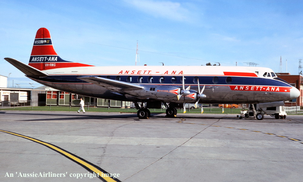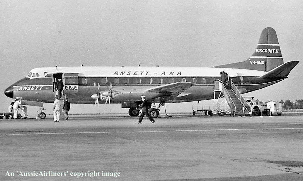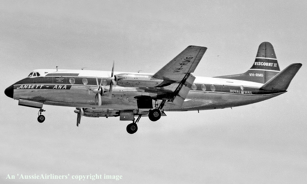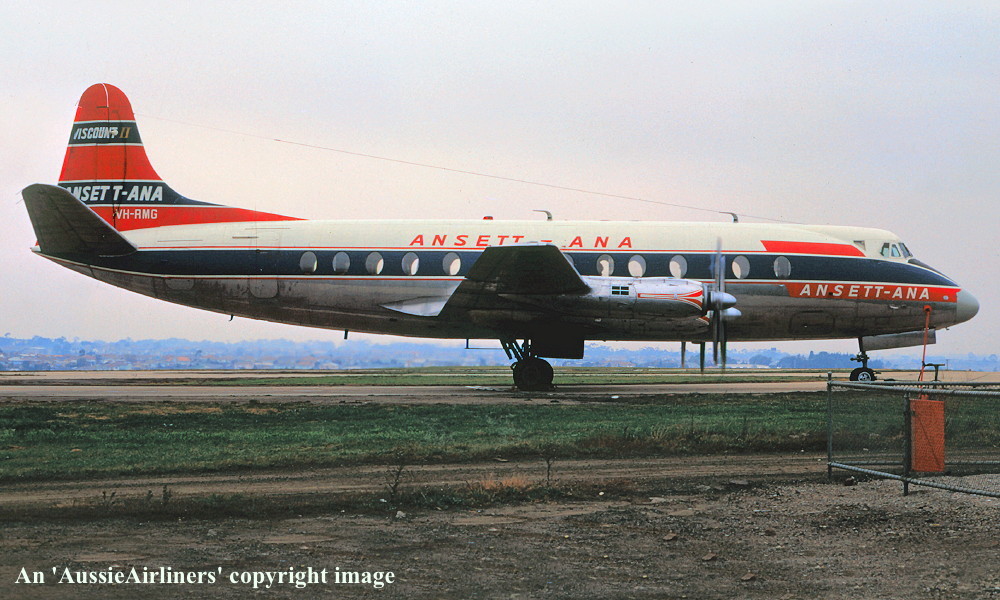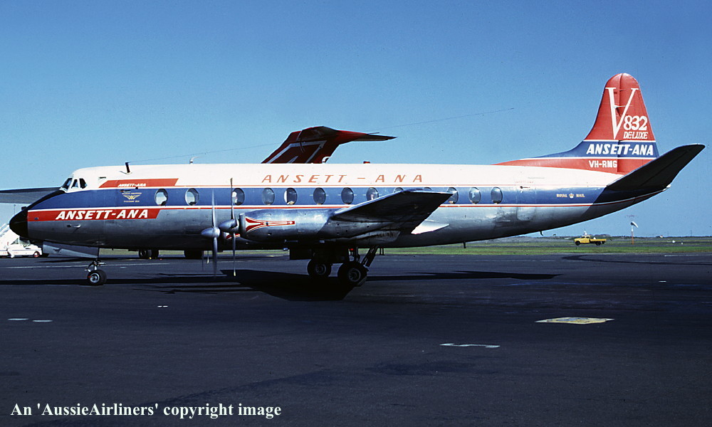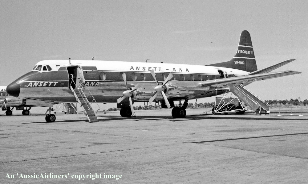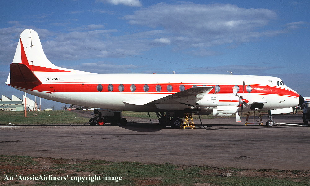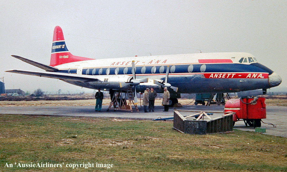 VH-RMG. Vickers Viscount 832. c/n 414. Was also registered as: B-2015; PK-RVP. |