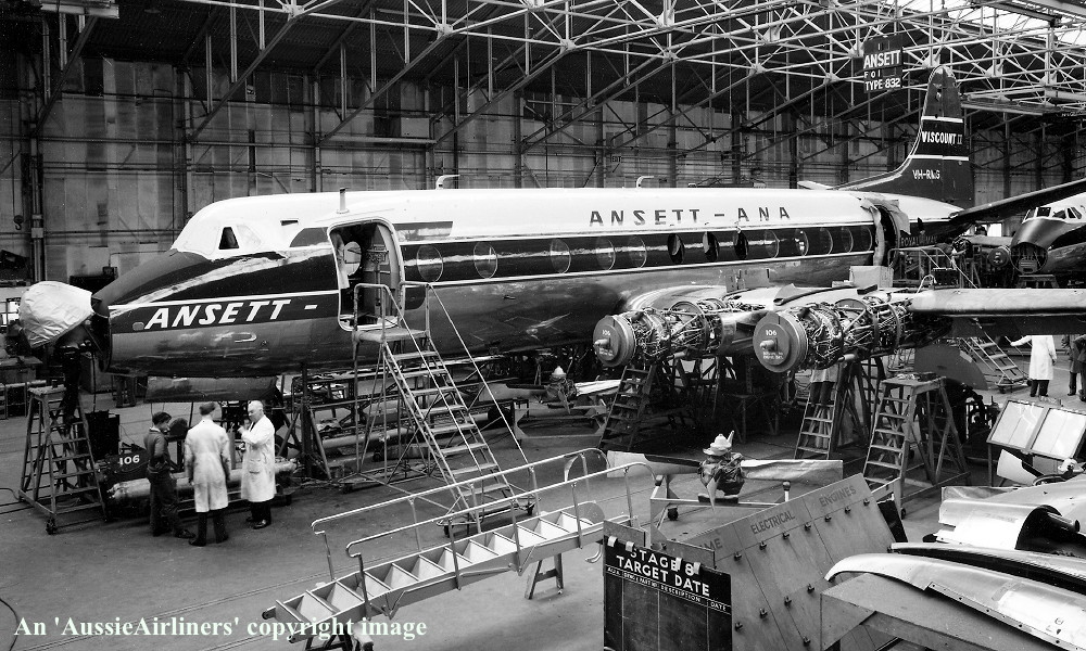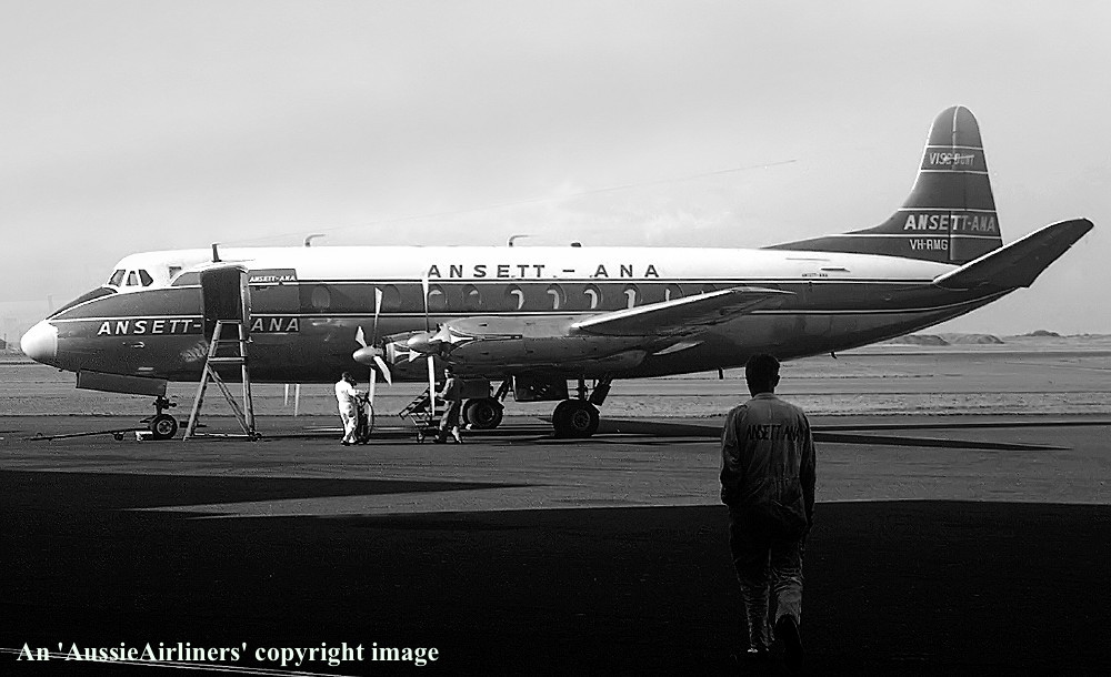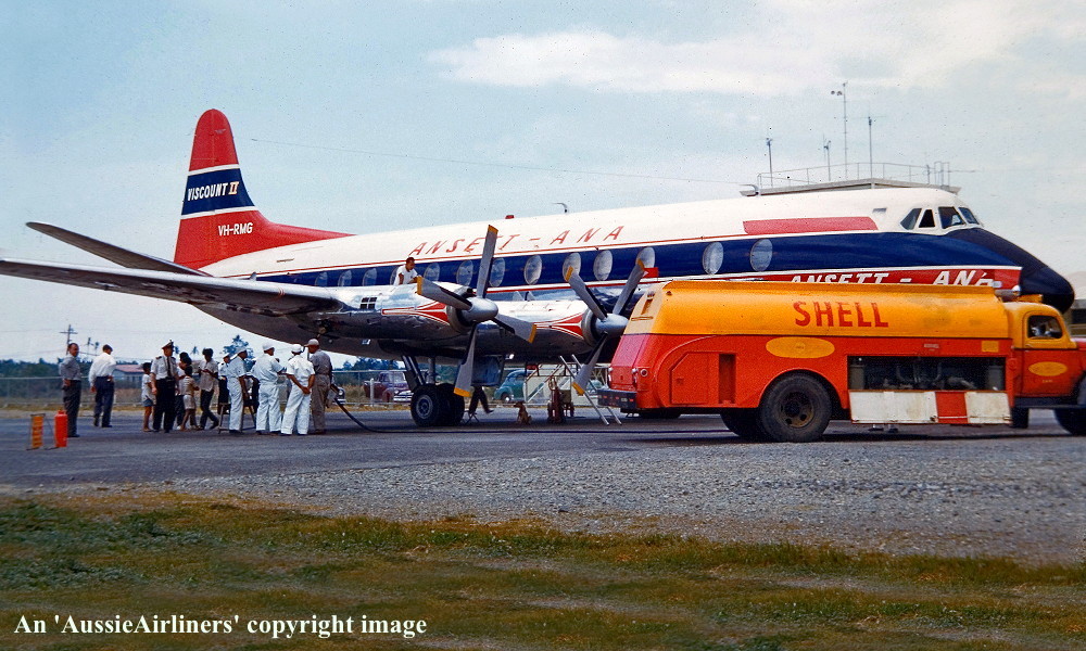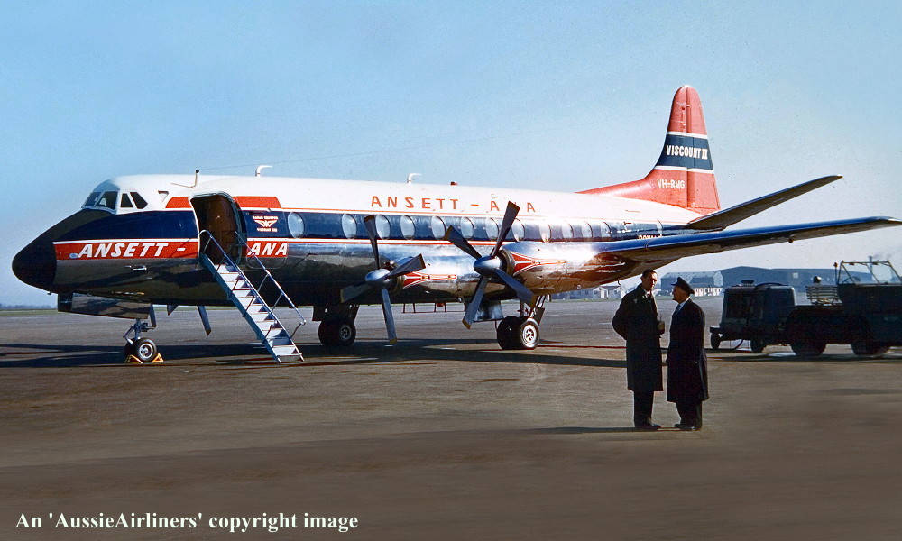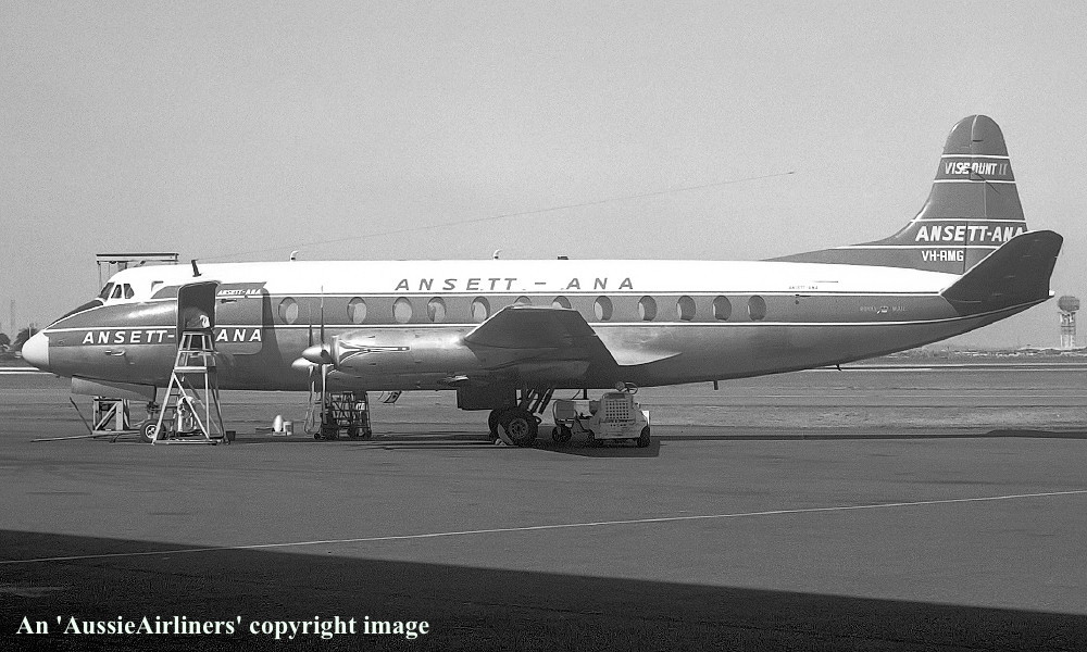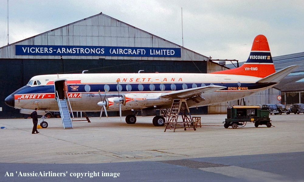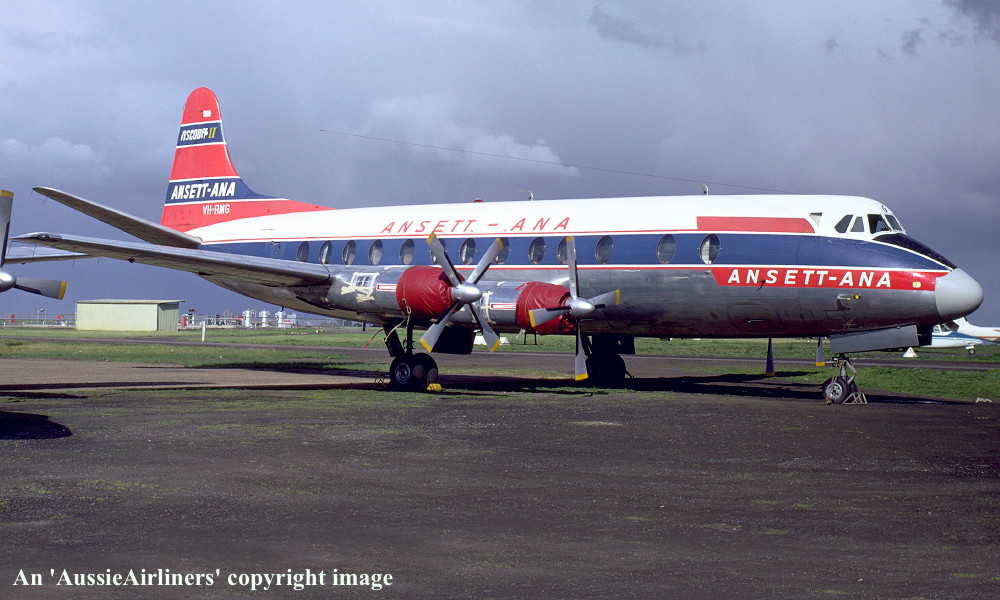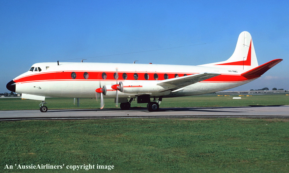 VH-RMG. Vickers Viscount 832. c/n 414. Was also registered as: B-2015; PK-RVP. |