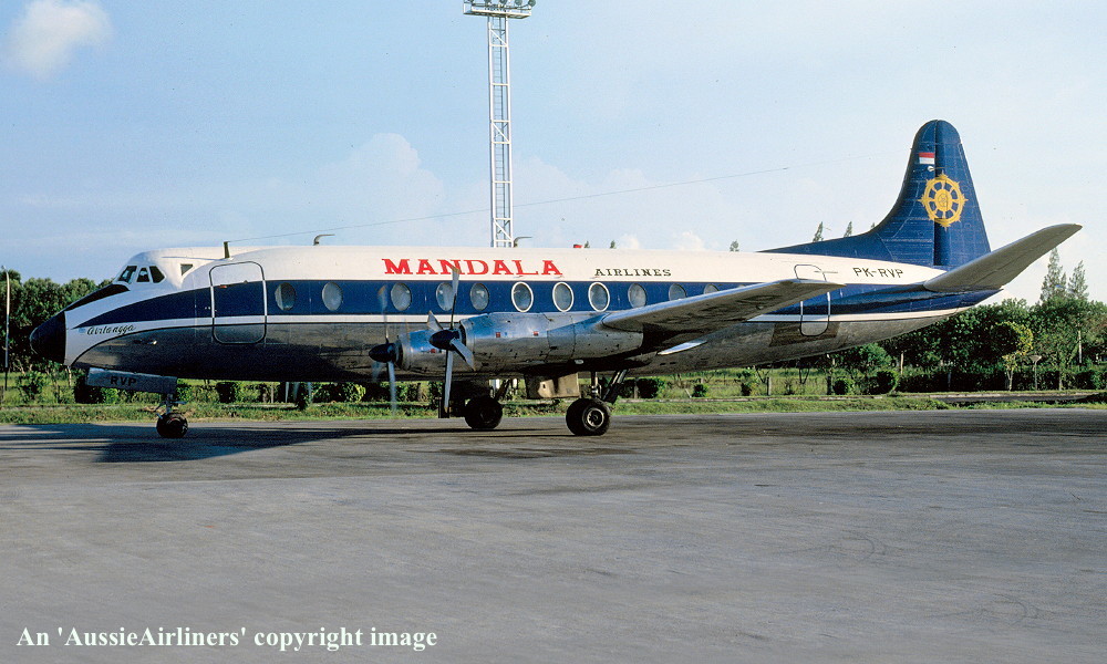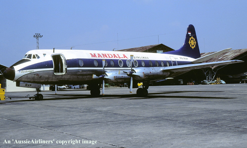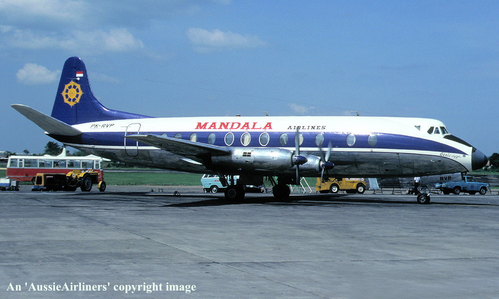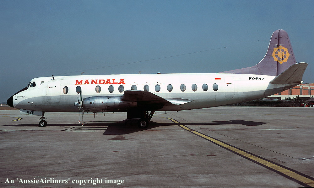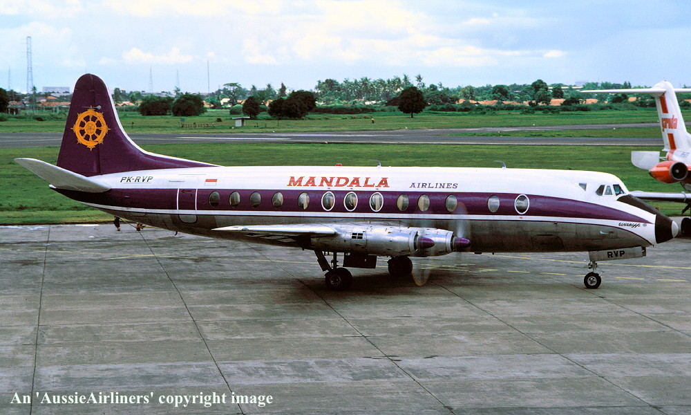 PK-RVP. Mandala - 'Airlangga' in the revised livery at an unknown airport, date unknown. (R. N. Smith Collection Copyright Image 0129-099.) |