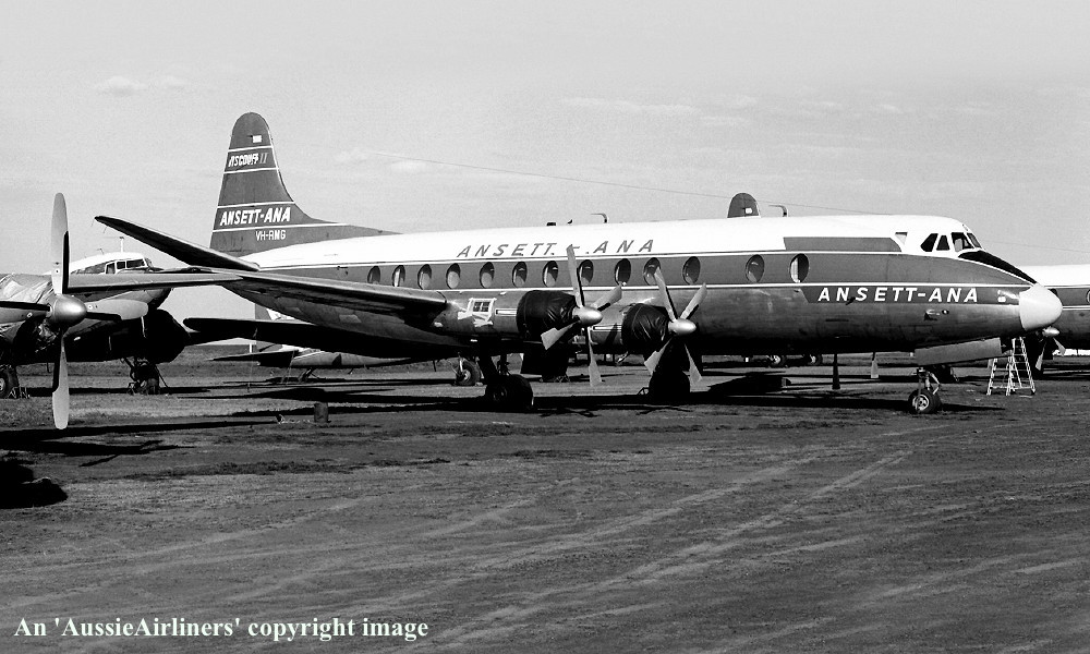 This aircraft was ordered new by Ansett-ANA - July 23, 1958 Built at the Vickers-Armstrong Hurn factory First flown at Hurn - February 23, 1959 Entered onto the Australian Aircraft Register as VH-RMG - March 12, 1959 Registered to Ansett Transport Industries Pty Ltd, Melbourne It was originally configured with 52 seats but it was later upgraded to 63 seats Departed Blackbushe on the delivery to Australia - March 13, 1959 It arrived at Melbourne (Essendon) on completion of the delivery flight from the United Kingdom - March 17, 1959 Delivery route: Blackbushe - Rome - Beirut - Bahrain - Karachi - Delhi - Calcutta - Bangkok - Saigon - Zamboanga - Biak - Darwin - Alice Springs - Melbourne Operated its first revenue service - March 20, 1959 It was damaged after it aquaplaned off the runway whilst landing at Brisbane (Eagle Farm) - January 06, 1967 Transferred to Ansett Airlines of Australia - November 01, 1968 Aircraft was not repainted into the standard Ansett 'delta' livery Operated its final revenue service - August 12, 1969 Withdrawn from service and placed in open storage at Melbourne (Essendon) Registered to Ansett Transport Industries (Operations) Pty Ltd - December 18, 1969 Sold to Far Eastern Air Transport (F.E.A.T.) - 1970 Departed Melbourne (Essendon) on the ferry flight to Taiwan (Taipei) - April 08, 1970 Cancelled from the Australian Aircraft Register - April 13, 1970 Entered onto the Taiwanese Aircraft Register as B-2015 - April 1970 The aircraft had flown 25,172 hours Sold to PT Mandala Airlines - May 29, 1986 Entered onto the Indonesian Aircraft register as PK-RVP - May 1986 The aircraft was named 'Christina Martha Tiahatu Nona Atz' and later ' Airlannga' Withdrawn from use and stored at Jakarta - August 1994 Scrapped |