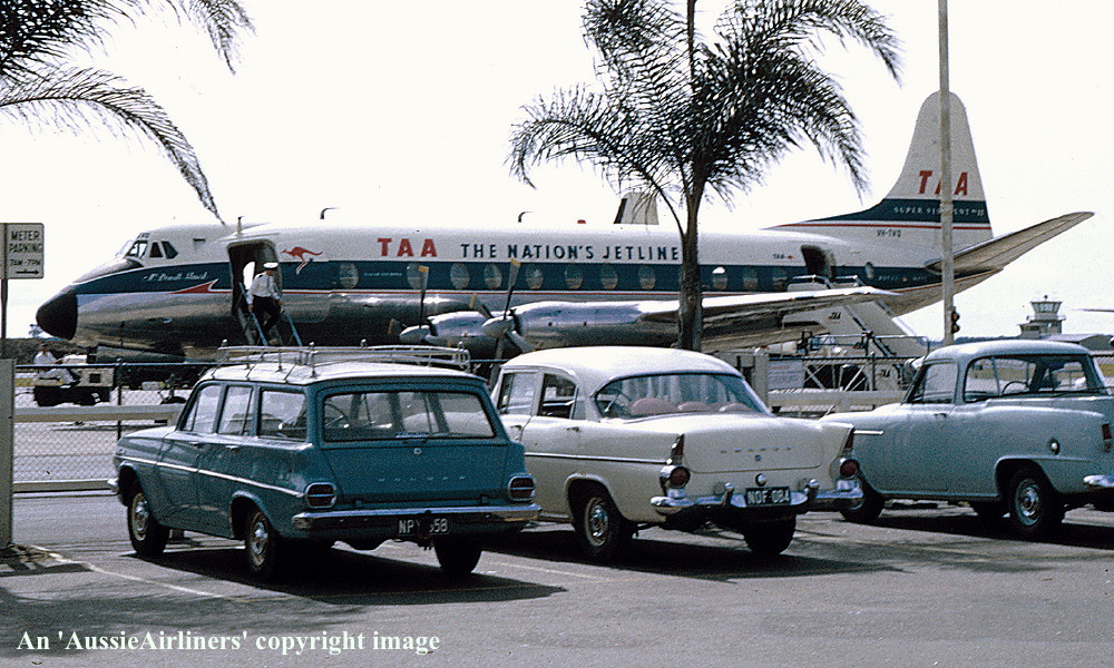 VH-TVQ. TAA - 'McDouall Stuart' in the final livery at Sydney Kingsford Smith Airport, May 1968. (G. Bennett Collection Copyright Image 0129-359.) |