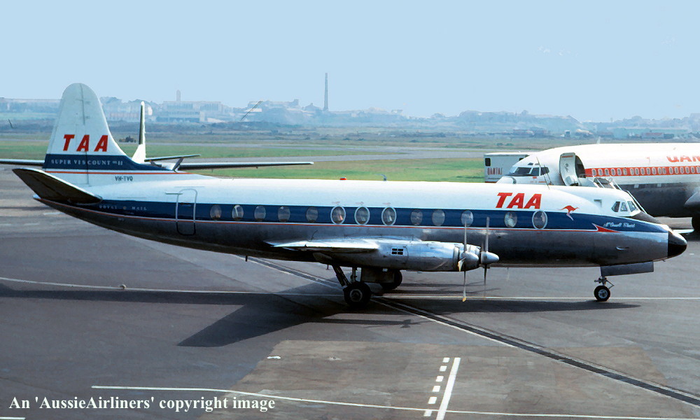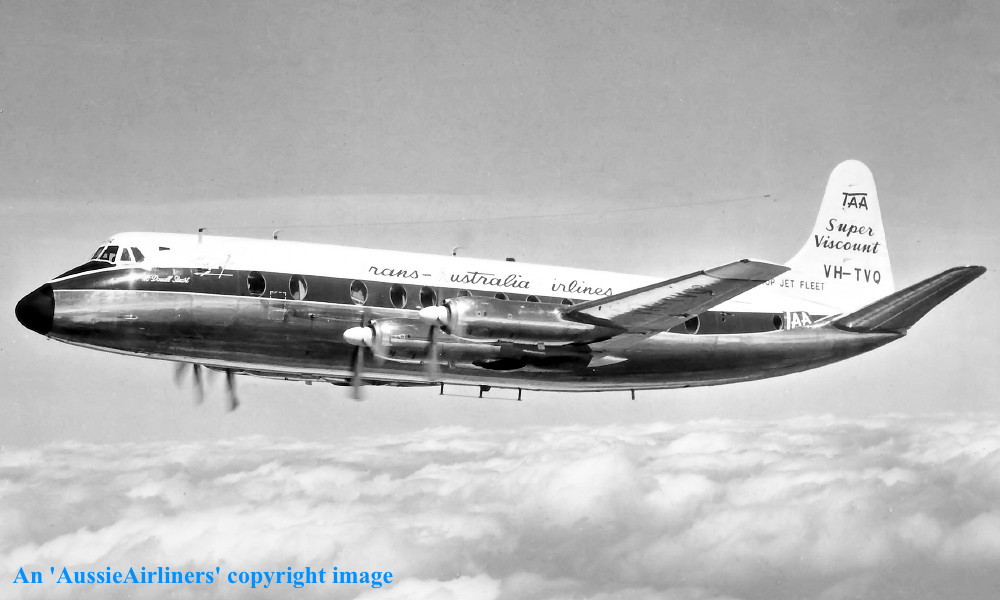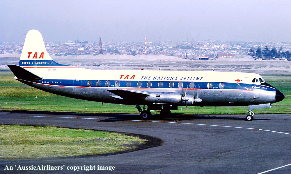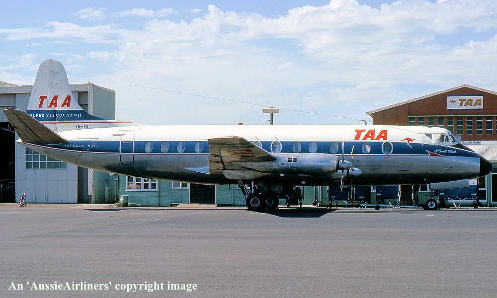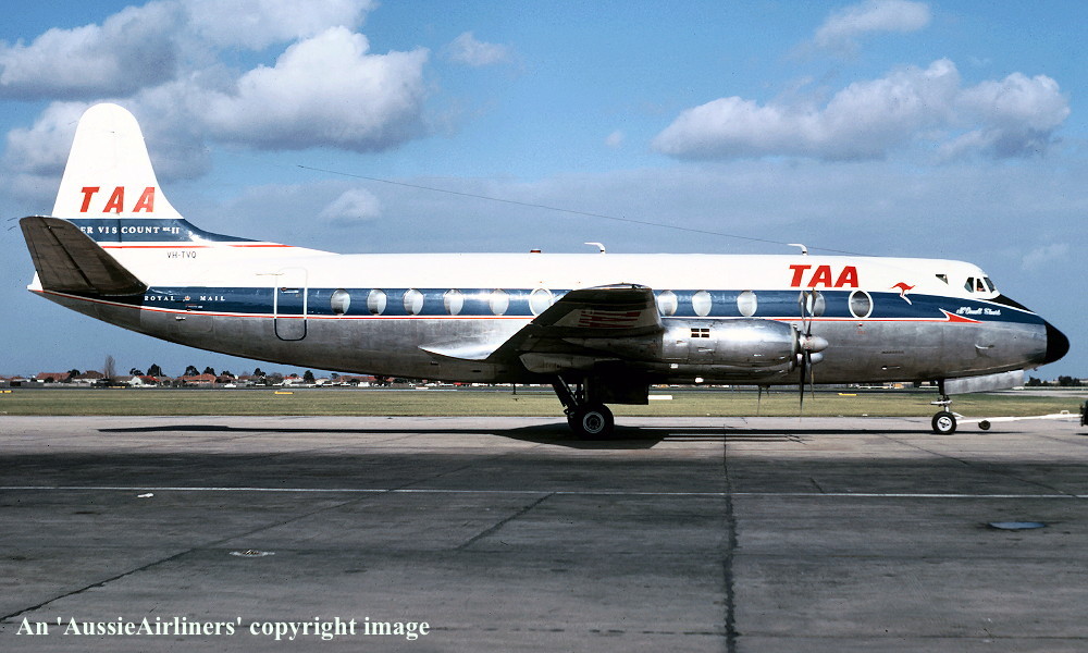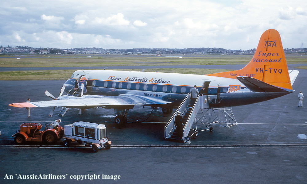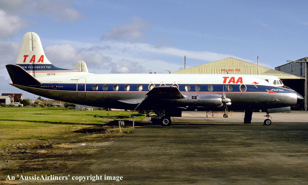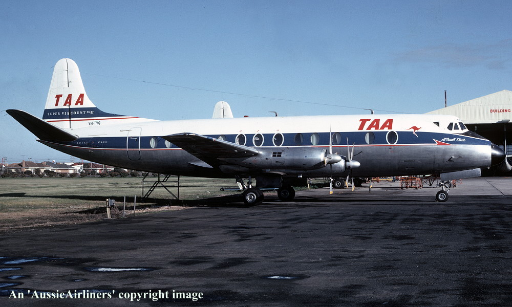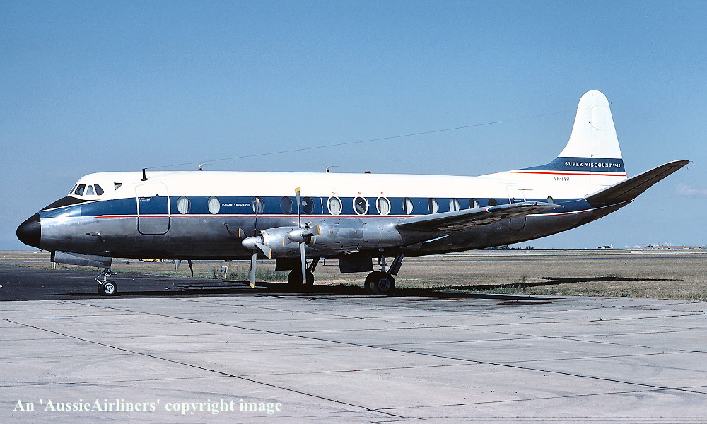VH-TVQ. Vickers Viscount 816. c/n 434. Was also registered as: B-2027; PK-MVL; PK-MVU. |