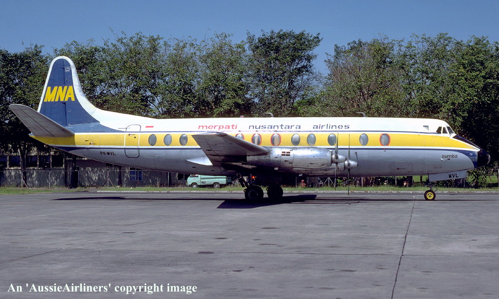 PK-MVL. Merpati Nusantara Airlines - 'Sumba' in the final livery at an unknown airport, July 1981. (R. N. Smith Collection Copyright Image 0129-278.) |