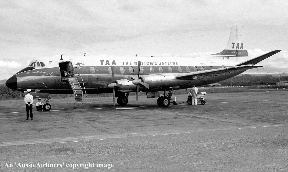 VH-TVQ. TAA - 'McDouall Stuart' in the final livery at Melbourne Essendon Airport, August 09, 1969. (G. Bennett Copyright Image 0129-356.) |