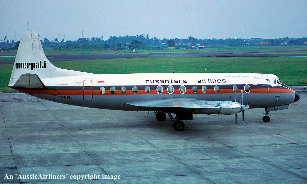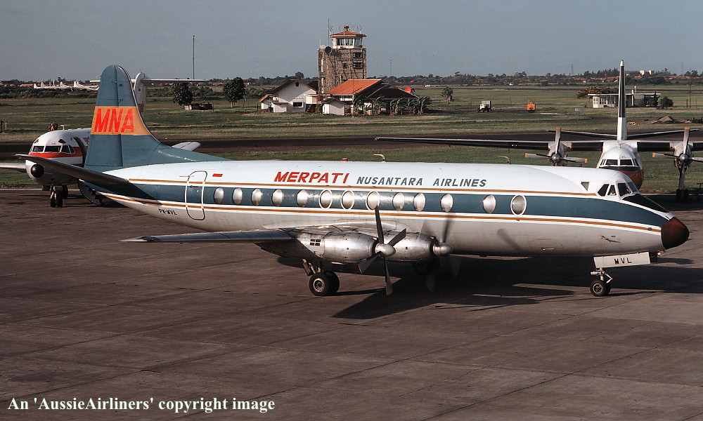 This aircraft was ordered new by Trans-Australia Airlines - ? Built at the Vickers-Armstrong (Aircraft) Limited Hurn factory First flown - June 08, 1959 Entered onto the Australian Aircraft Register as VH-TVQ - June 18, 1959 Registered to Australian National Airlines Commission, Melbourne Departed Hurn on the delivery flight to Australia - June 17, 1959 It arrived at Melbourne (Essendon) on completion of the delivery flight - June 24, 1959 Ferry crew: Captains W. O. James, C. L. Browne, M. Baker; Navigator P. B. Stone The aircraft's arrival was timed to coincide with the arrival of the Electra 'VH-TLA' and Friendship 'VH-TFA' The aircraft was named 'McDouall Stuart' Operated its first revenue service - June 29, 1959 Operated its final revenue service Adelaide (West Beach) - Melbourne (Essendon) as TN519 - July 07, 1970 The aircraft was placed in storage at Melbourne (Essendon) It had flown 26,463 hours with 20,535 cycles The intended sale to Colney Aircraft Sales was not completed - February 1971 A proposed sale to Arkia Israel Inland Airlines was not completed due to political reasons - March 1971 Sold to Consolidated Aviation Holdings Pty Ltd, Sydney - April 17, 1971 Sold to Australian Aircraft Sales Pty Ltd, Sydney - April 17, 1971 Sold to Far Eastern Air Transport - April 17, 1971 This sale was brokered by A.A.S. on behalf of Consolidated Aviation Holdings Departed Melbourne (Essendon) on the ferry flight to Taiwan - April 17, 1971 It arrived at Taiwan (Taipei) on completion of the ferry flight - April 19, 1971 Ferry route: Melbourne - Adelaide - Alice Springs - Darwin - Denpasar - Kot Kinbalu - Manila - Taipei Cancelled from the Australian Aircraft Register - April 19, 1971 Entered onto the Taiwanese Aircraft Register as B-2027 - ? Leased to Merpati Nusantara Airlines - May 24, 1975 Entered onto the Indonesian Aircraft Register as PK-MVL - ? Returned to Far Eastern Air Transport at the end of the lease - March 01, 1983 Sold to Mandala Airlines and reregistered as PK-MVU - 1986 The aircraft was named 'Nias' It was badly damaged in a landing accident at Jakarta - June 16, 1988 The starboard undercarriage collapsed on landing causing the aircraft to depart the runway The propellers on Number 3 and 4 engines were destroyed It was repaired and returned to service The aircraft was destoyed when it crashed into Mt Liliboy whilst landing at Ambon's Pattimura Airport - July 24, 1992 It was on the flight from Jakarta to Ambon and the crash occurred during its second missed approach in heavy rain Killed were the 7 crew members and 63 passengers |
