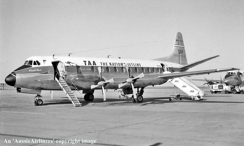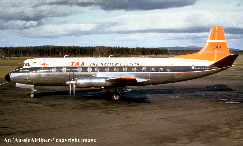 VH-TVQ. TAA - 'McDouall Stuart' in the final livery at Melbourne Essendon Airport, August 09, 1969. (G. Bennett Copyright Image 0129-299.) |