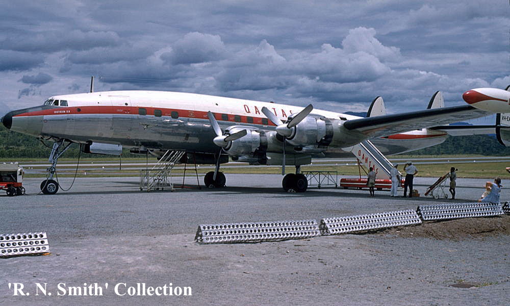 On This Day - April 04, 1960. The Qantas Airways Lockheed 1049G-02-82 Constellation VH-EAA 'Southern Sea' arrived at Sydney (Kingsford Smith) having completed its ferry flight from the United States (Ontario, California) where it had been converted to a Lockheed 1049H-01-55 that would enable it to be operated in either a passenger or freighter configuration. |