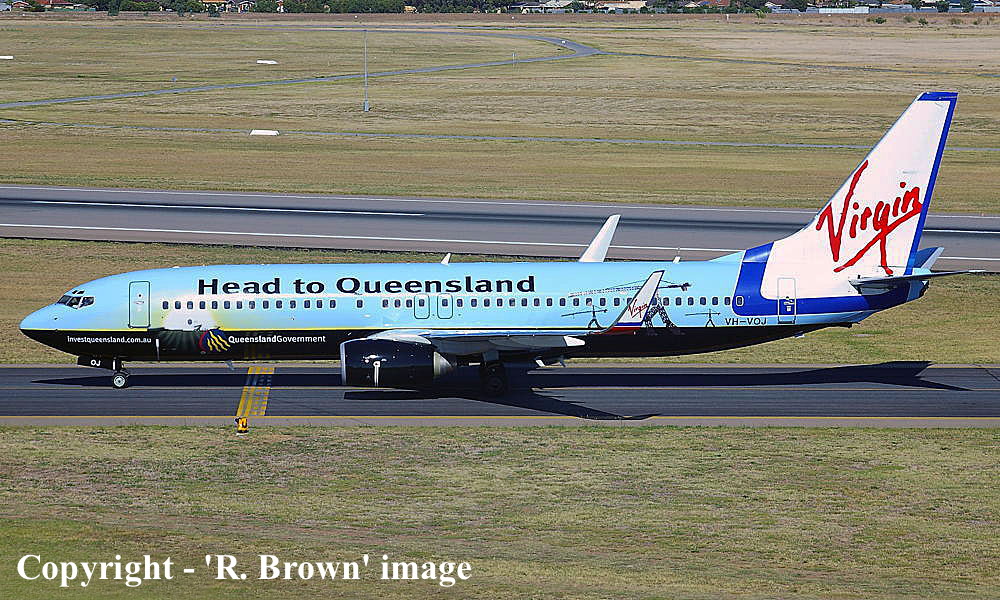 On This Day - March 06, 2006. The Virgin Blue Boeing 737-81Q VH-VOJ was rolled-out at Melbourne (Tullamarine) in the special 'Head To Queensland' livery. The aircraft was renamed 'Miss Chief'. |